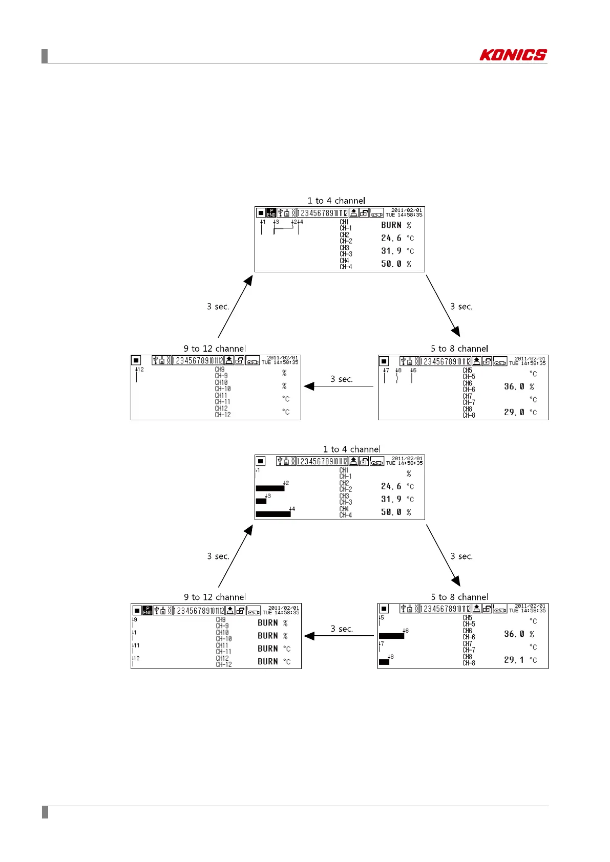 A screen displays 4 channels and automatically switches other screens by 3 sec period.