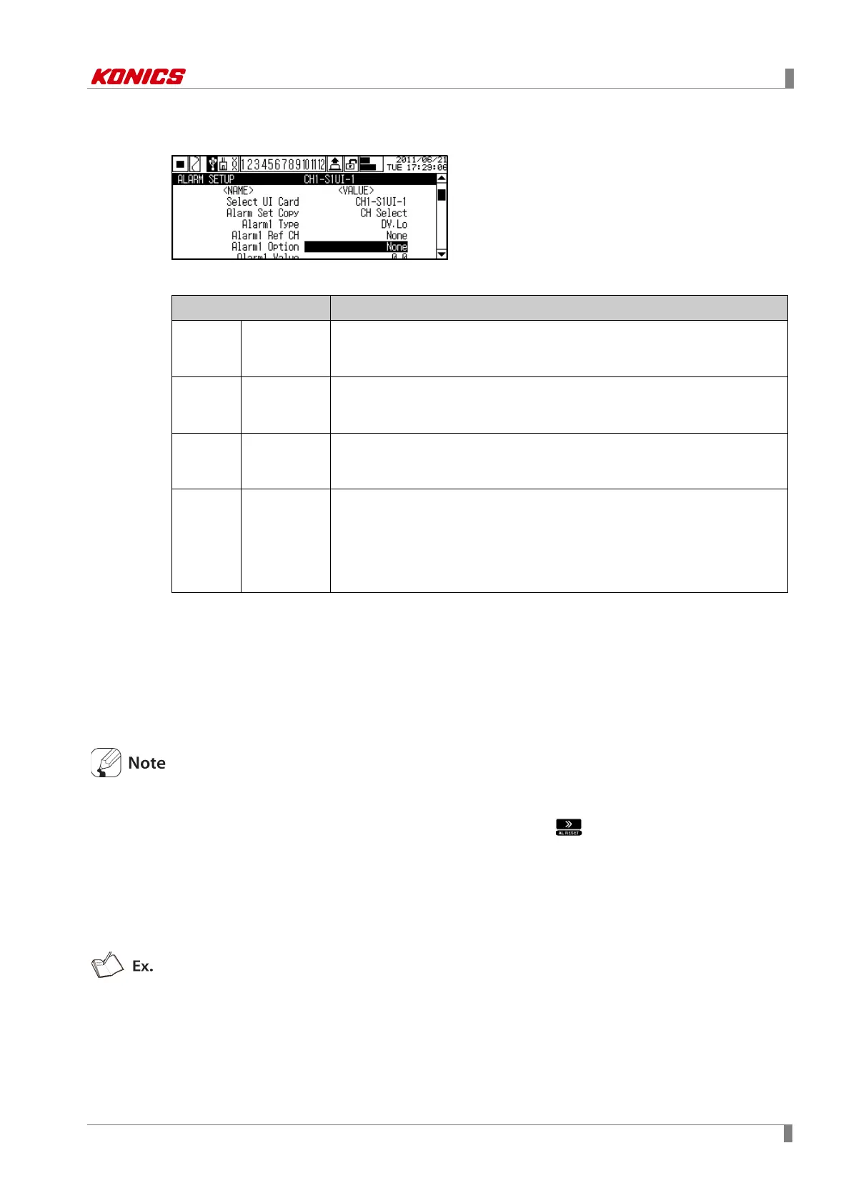 To reset alarm output by digital input, DI-□ Type(Select digital input□) from DIGITAL INPUT
