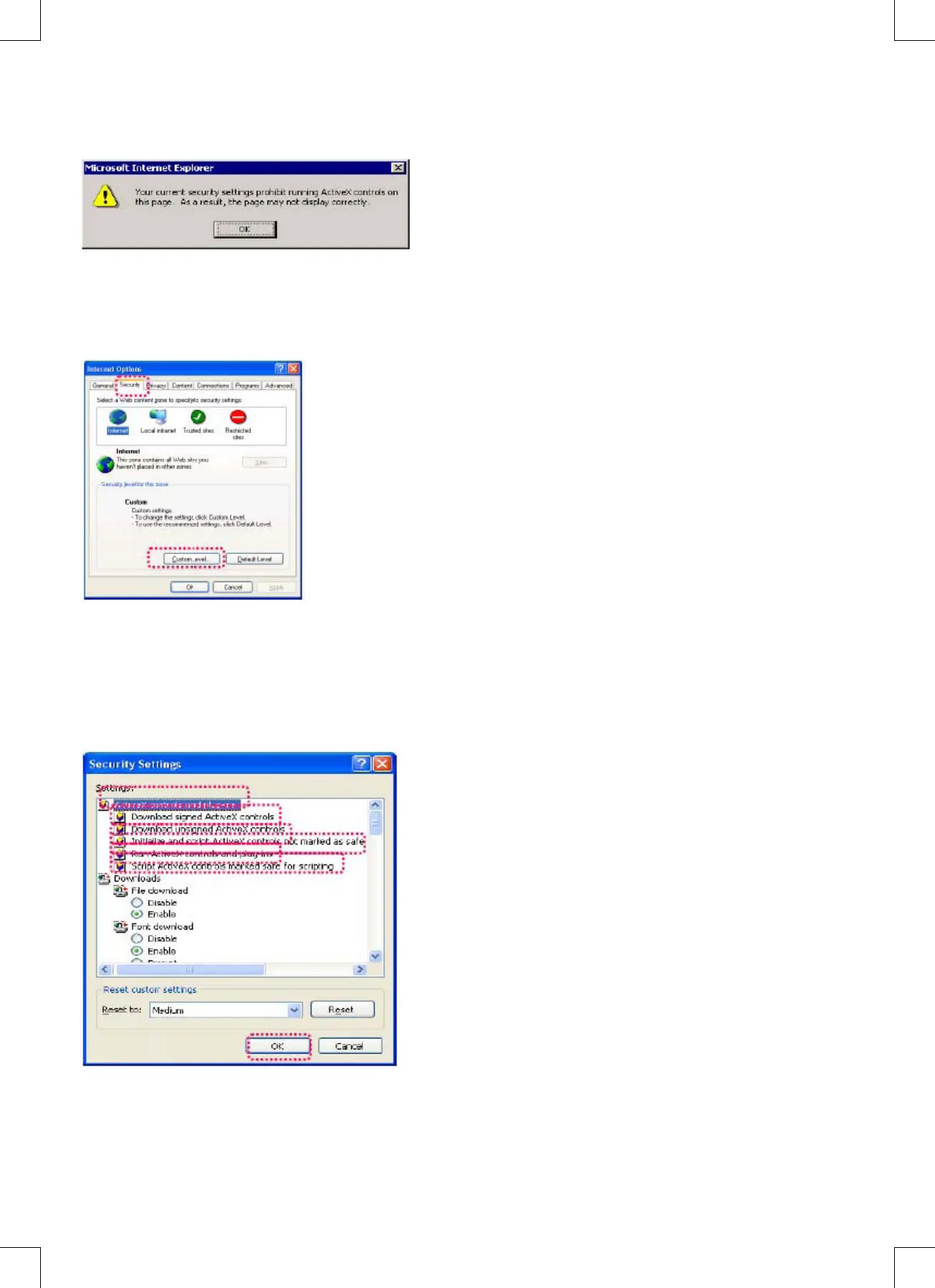 Paso 2: Después de entrar en Nivel Personalizado…. aparece la ventana de ajustes de seguridad. Cambie las opciones