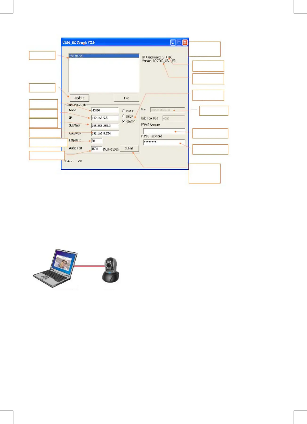 vyzkoušení, zda kamera CMP-NWIPCAM21 funguje, je třeba IP adresu počítače dočasně změnit. Po ukončení