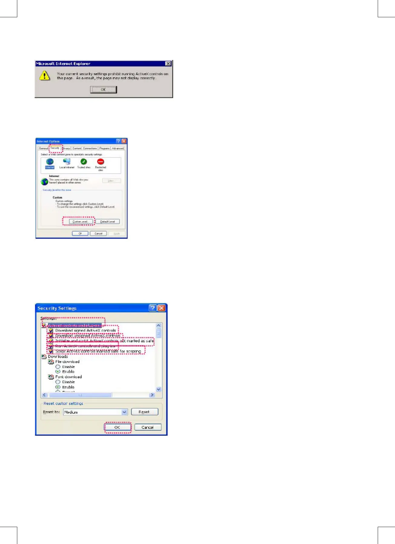 1. Stahovat podepsané ovládací prvky ActiveX: Povolit