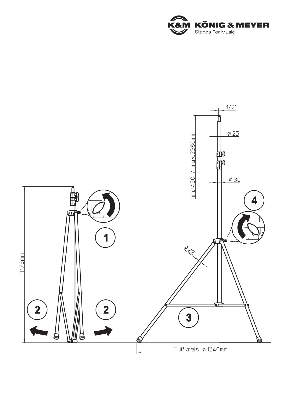 - Height min. 1430 / max. 2380 mm, Base Circumference ø 1240 mm, 1/2"- Connector Thread, Weight: 5 kg