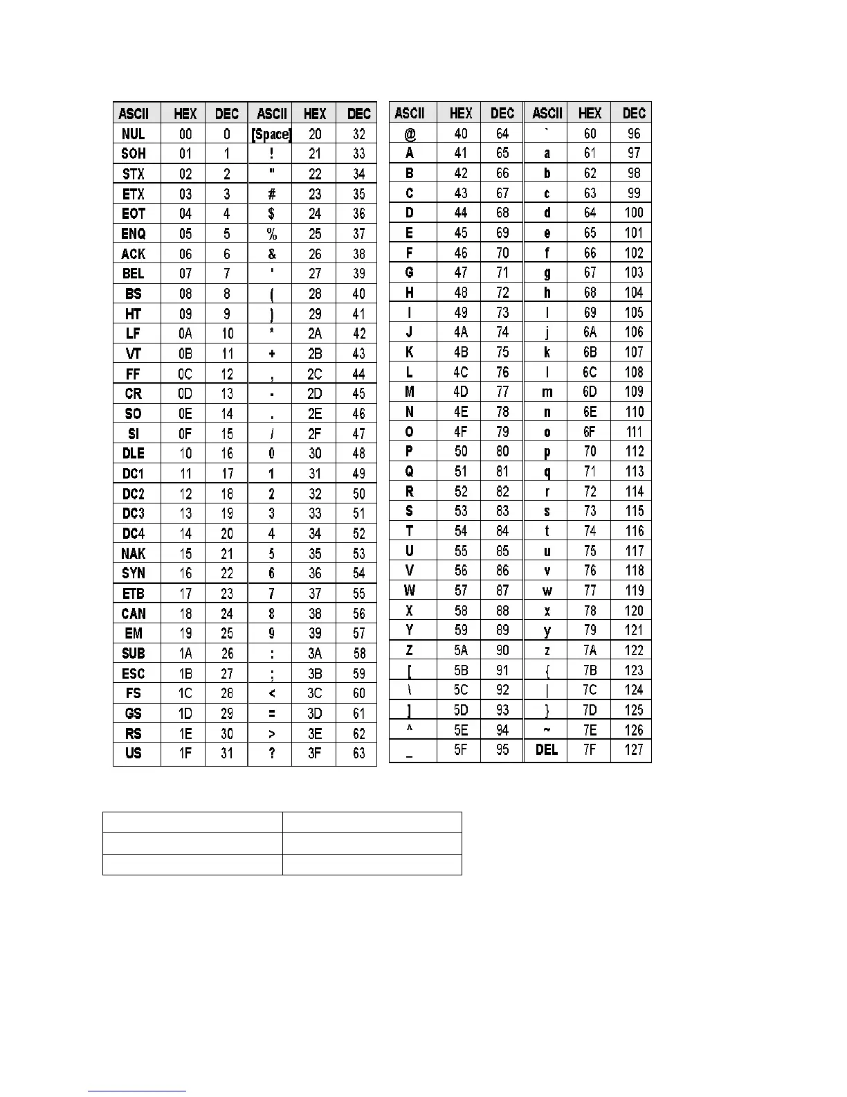 TABELLA ASCII