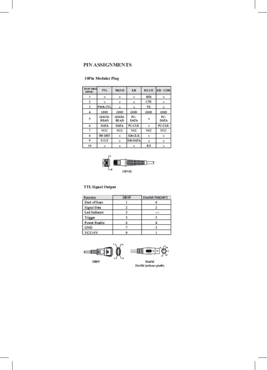 Konig CMP-BARSCAN50 - PIN ASSIGNMENTS; RJ-45 Modular Plug Pinout; TTL Signal Output