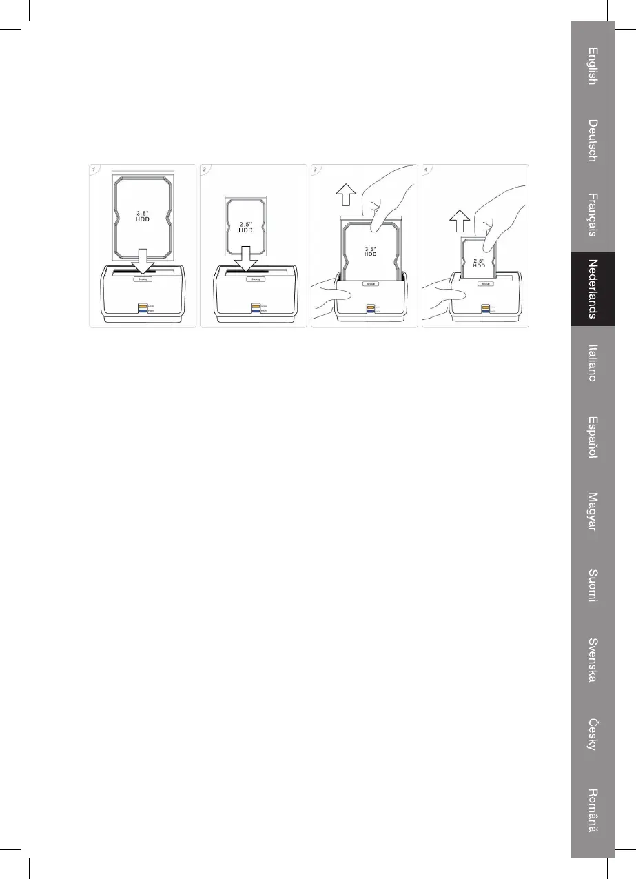 1. Het docking station ondersteunt 2.5” of 3.5” SATA harde schijven, deze kunnen direct in de