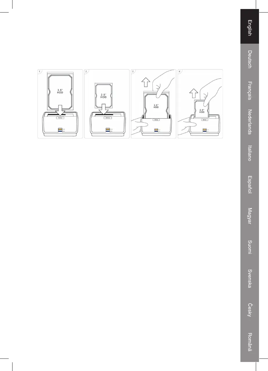 1. The docking supports 2.5” or 3.5” SATA HDD directly plug in to the SATA connector , which