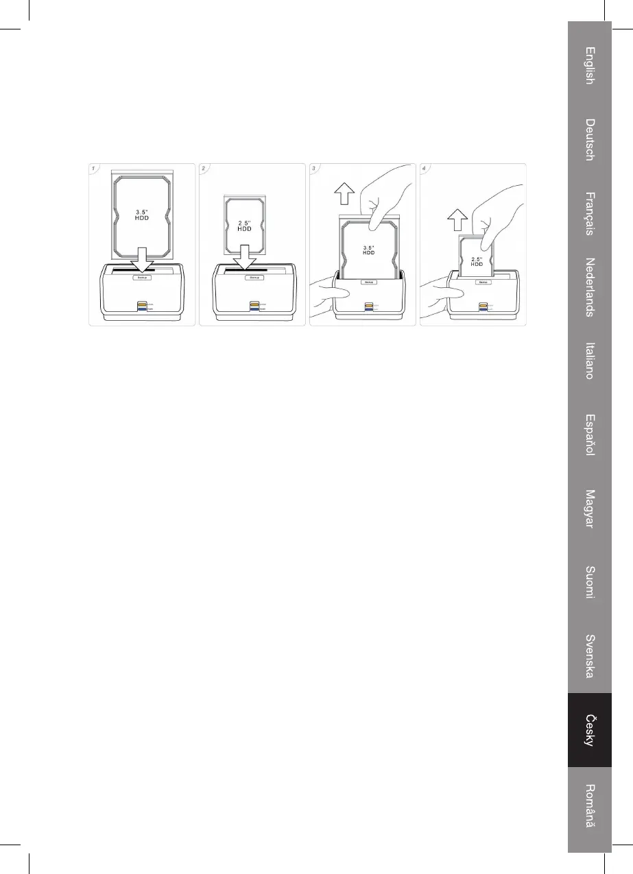1. Připojovací stanice umožňuje zasunutí pevného disku 2.5” nebo 3.5” SATA HDD přímo do