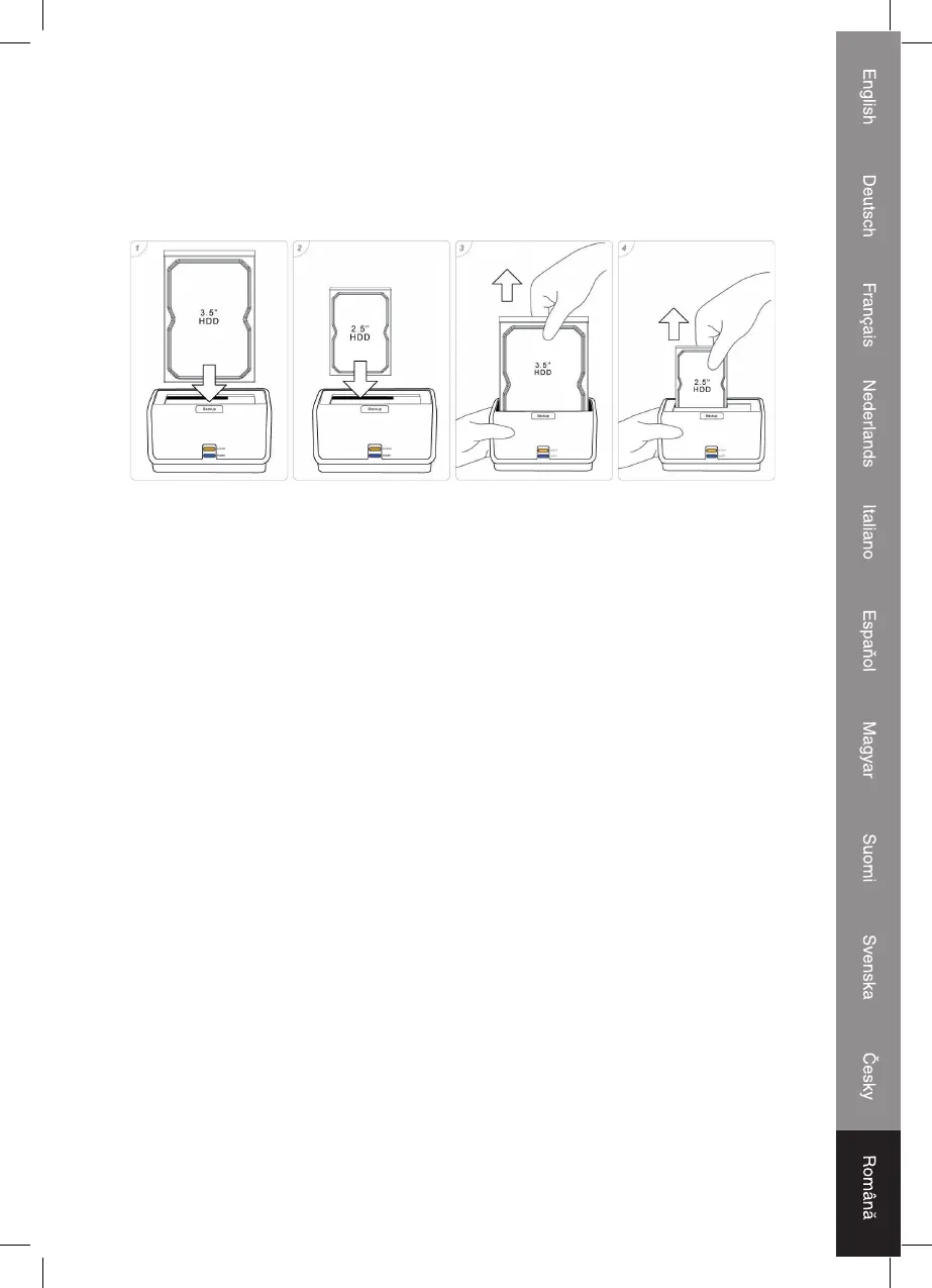1. Staţia sprijină HDD-urile SATA de 2.5” sau 3.5”, conectate direct la conectorul SATA.