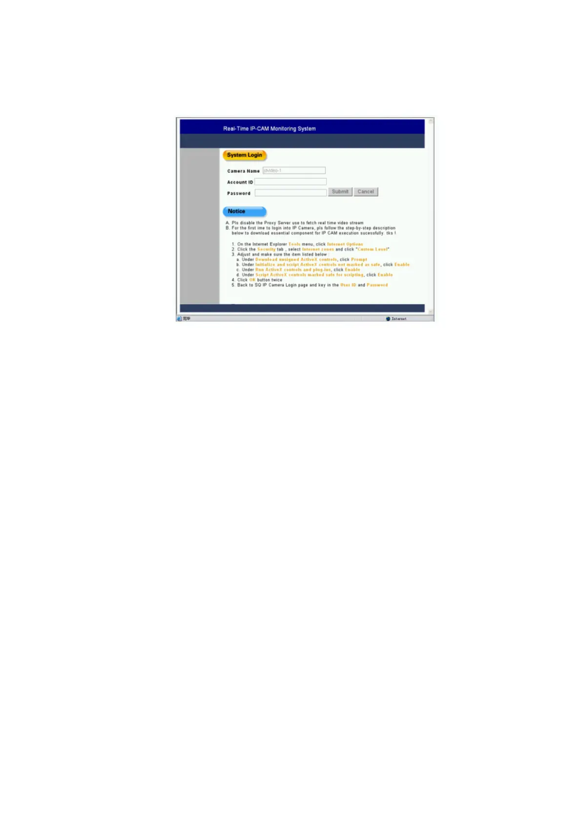 Step 2: The system login window will appear in IE, as