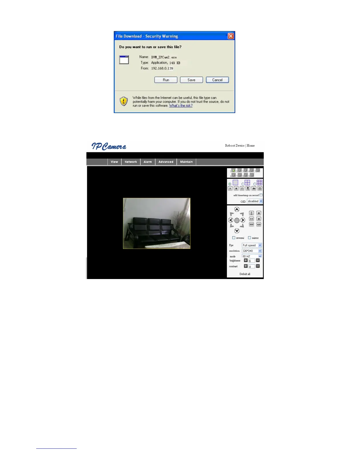 befindet sich am oberen Rand der Benutzeroberfläche und enthält View, Network, Alarm, Advanced und