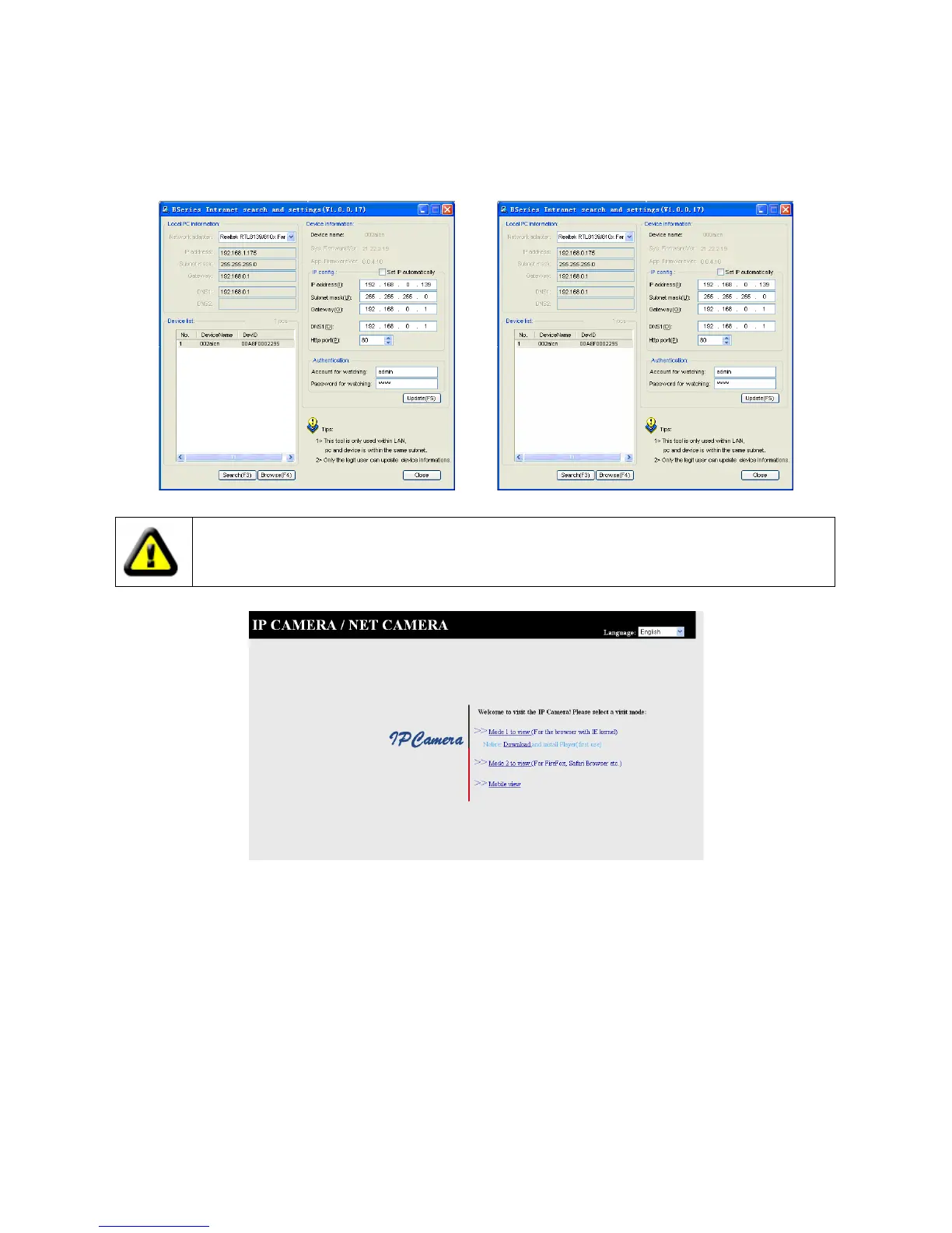 käyttäjänimi ja salasana. Tämän jälkeen näet kameran kotisivun. Valitse ”English” ikkunan oikeasta