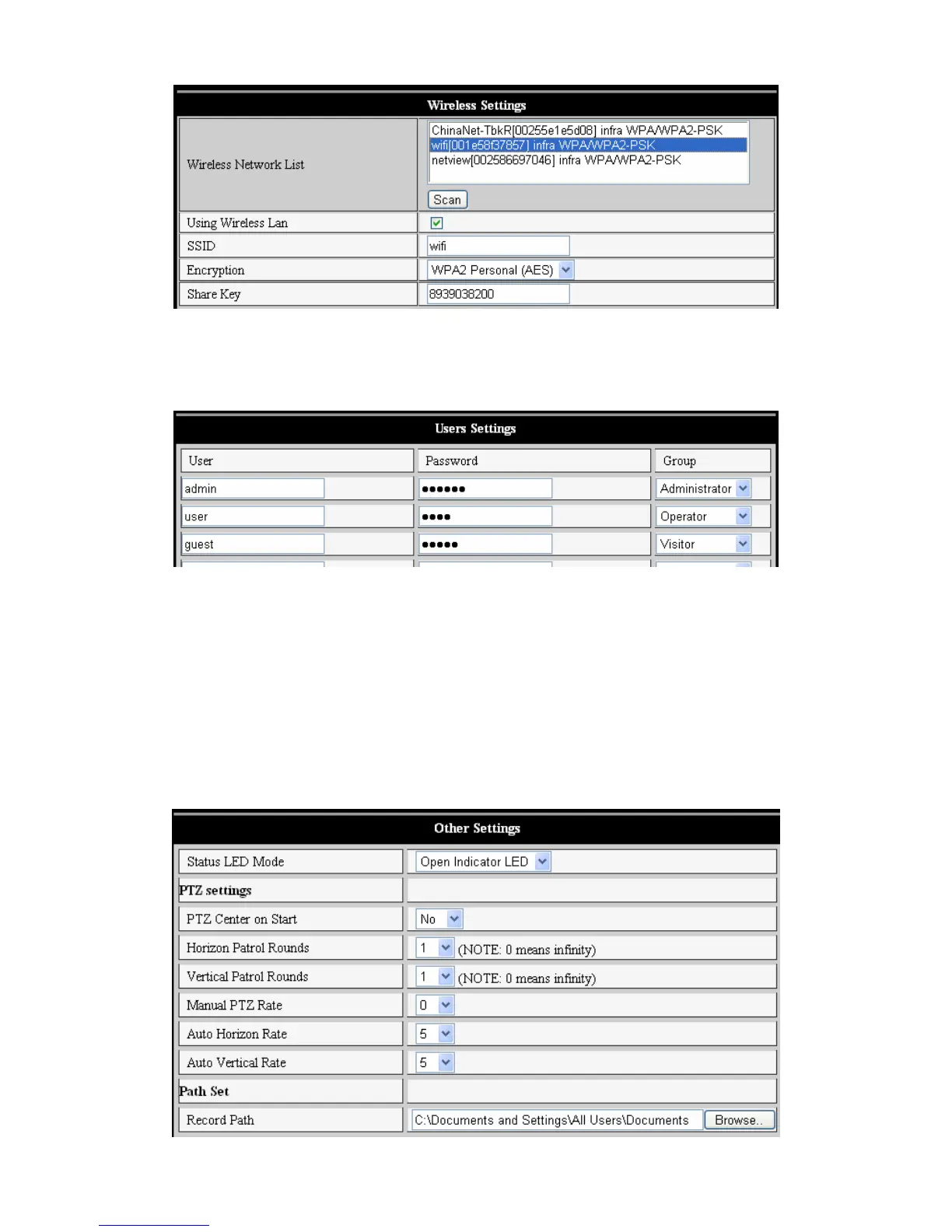 Existují tři úrovně autorizace: Administrator/Operator/Visitor (administrátor/operátor/návštěvník).