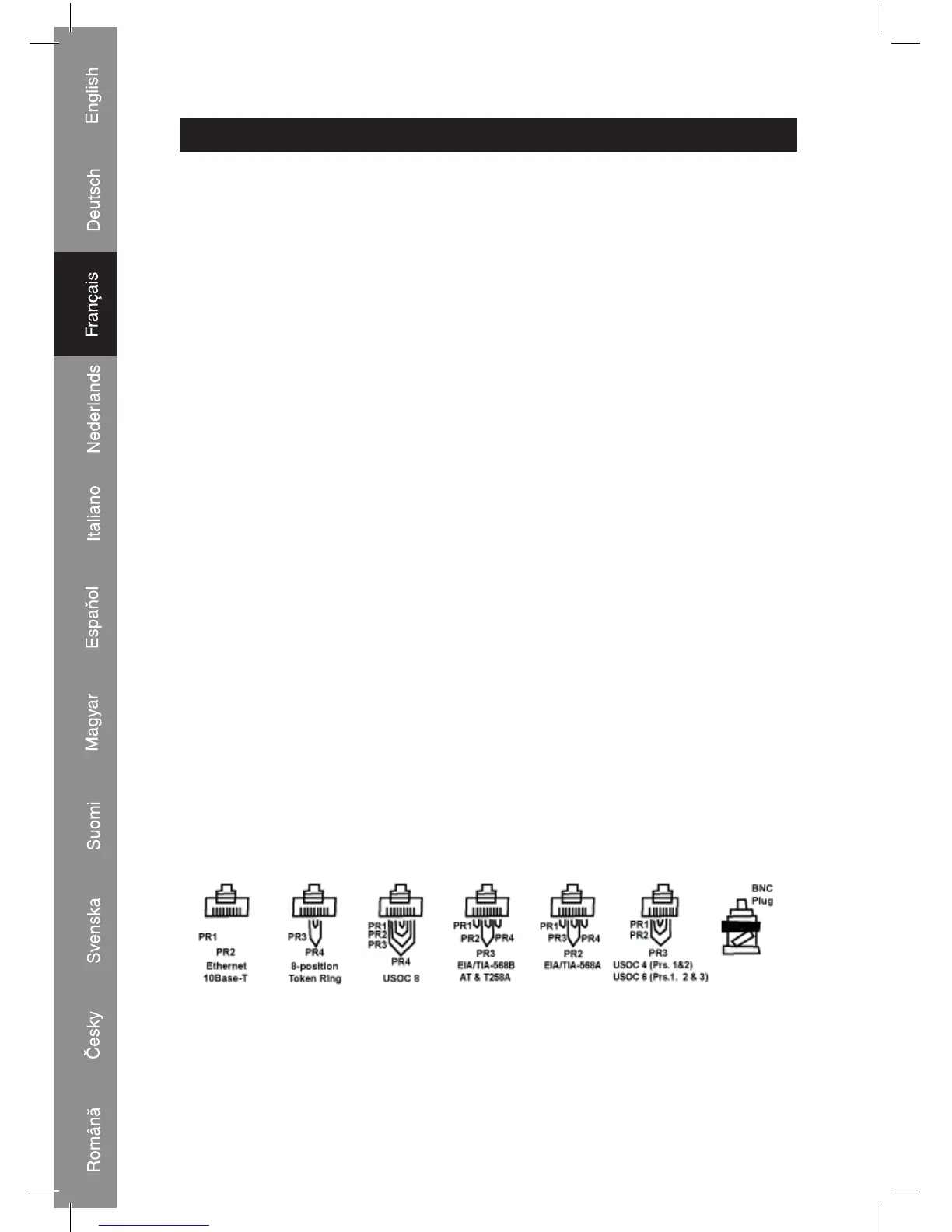 Ethernet 10Base-T, 10Base-2, RJ45/RJ11 modulaires, 258A, TIA-568A/568B, en