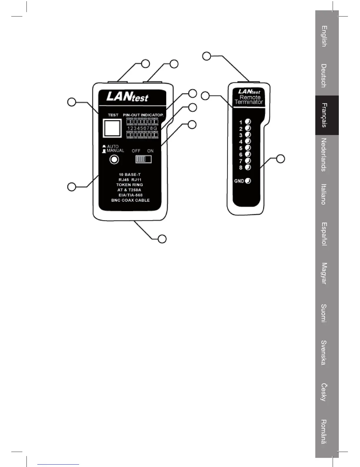 10) LED de mise à la terre pour l'extrémité de réception