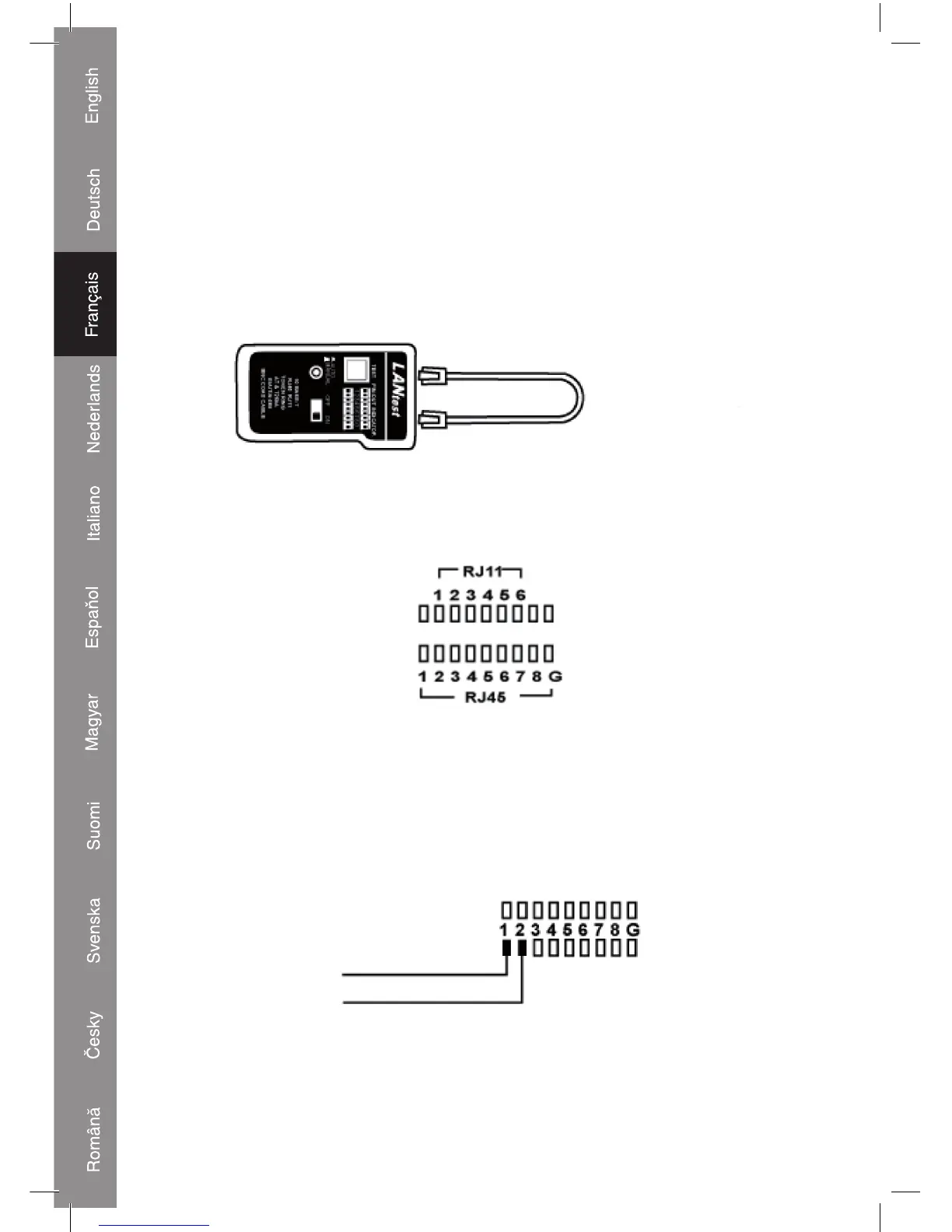 • Veuillez suivre les procédures du test de câble 10Base-T. L'affi chage à LED doit
