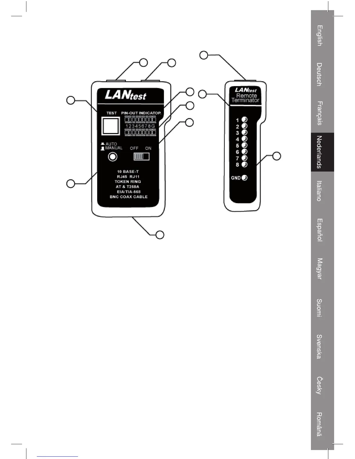 “”) en het andere eind van de te testen kabel in de ontvangende RJ45 contactbus.