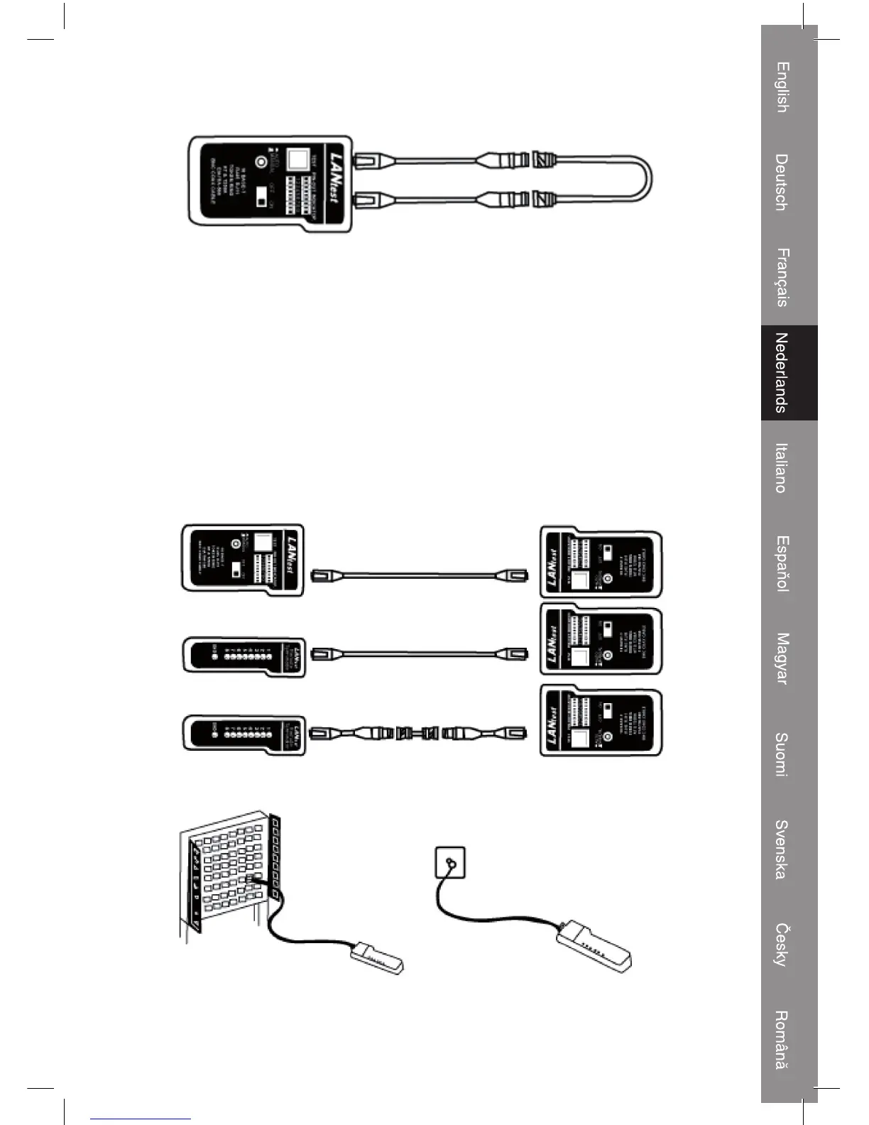 • Steek één eind van de te testen kabel in de bron RJ45 contactbus (gemarkeerd met