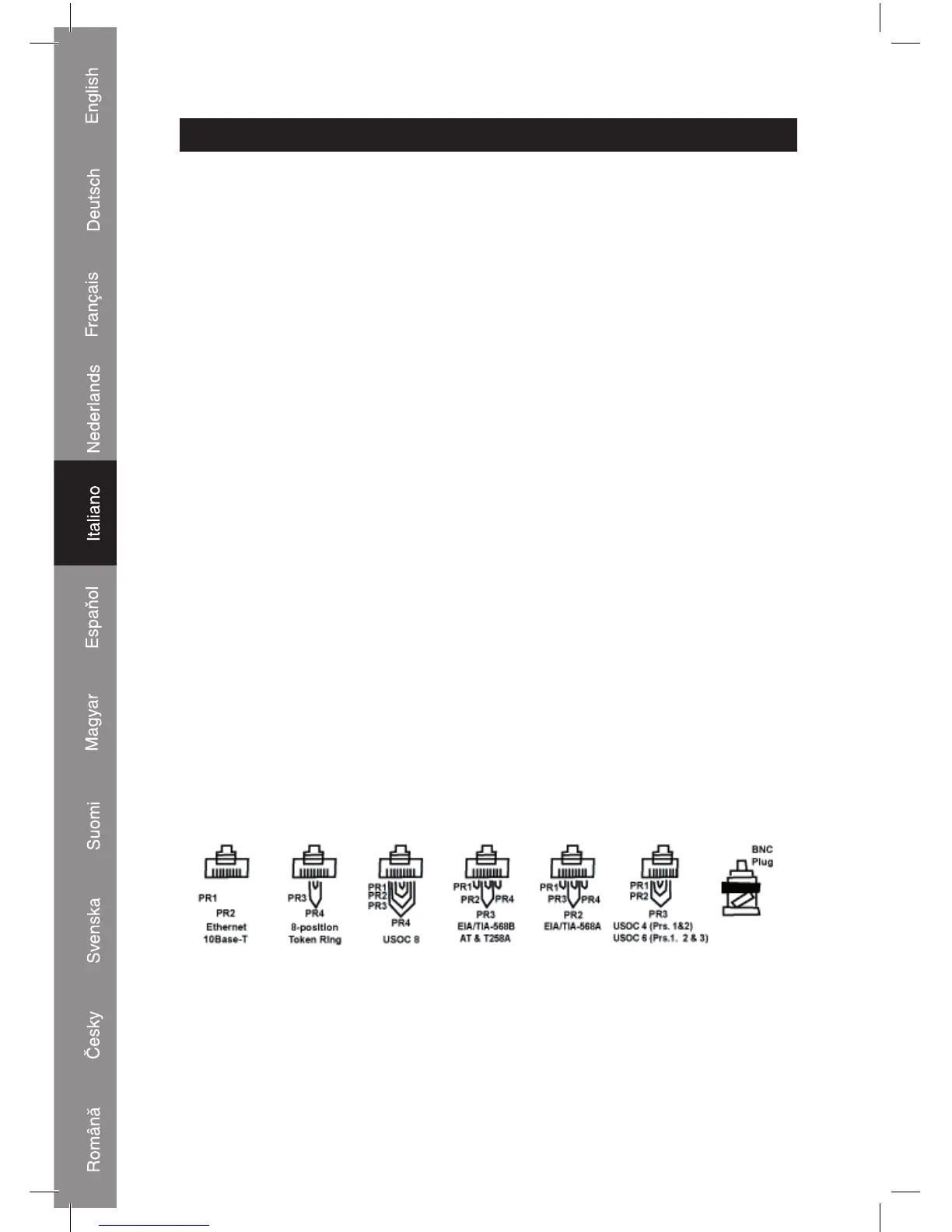 cavi modulari RJ45/RJ11, cavi 258A, TIA-568A/568B e Token Ring, ecc.
