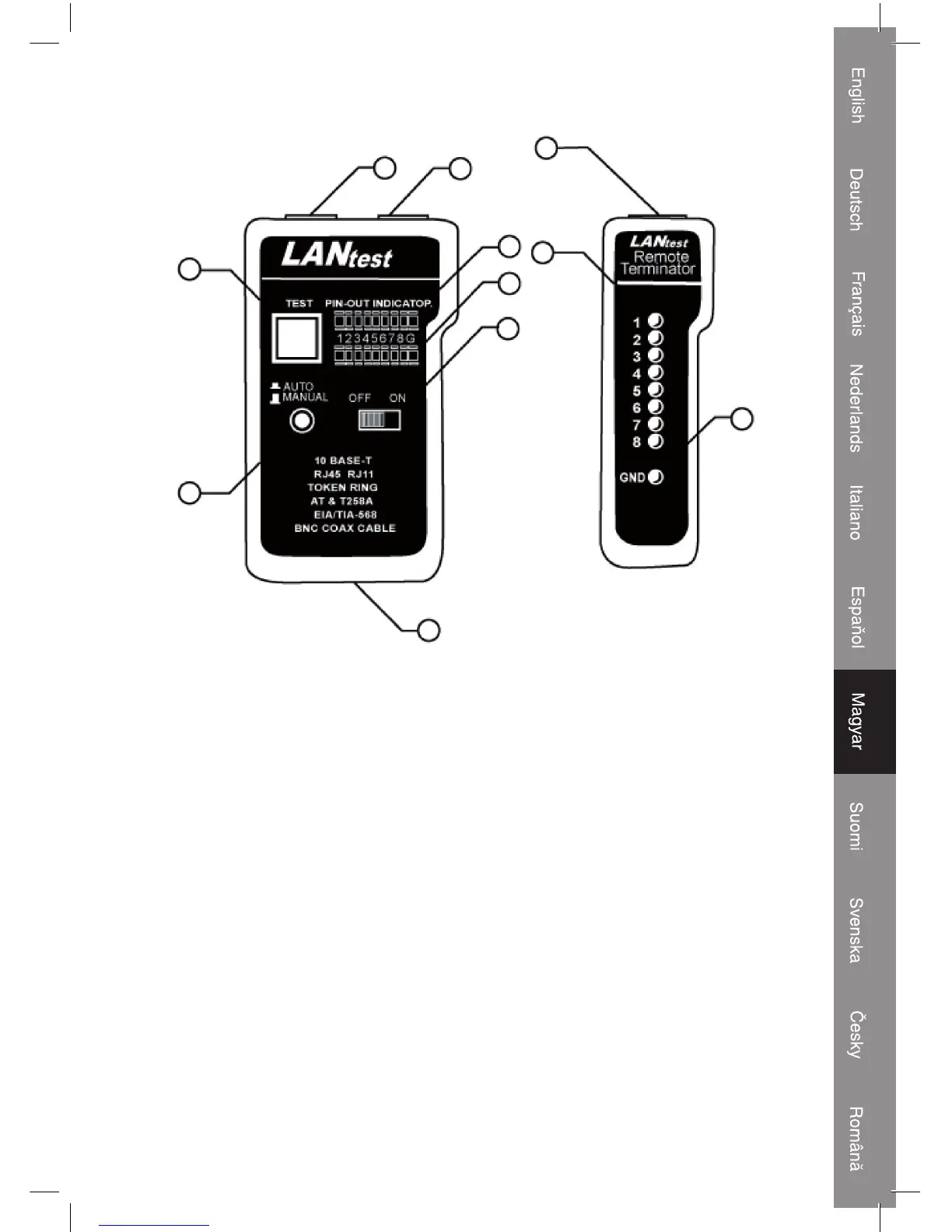 • a tesztelt kábel egyik végét dugaszolja a (“” jelzésű) küldő RJ45 jack-csatlakozóra, a