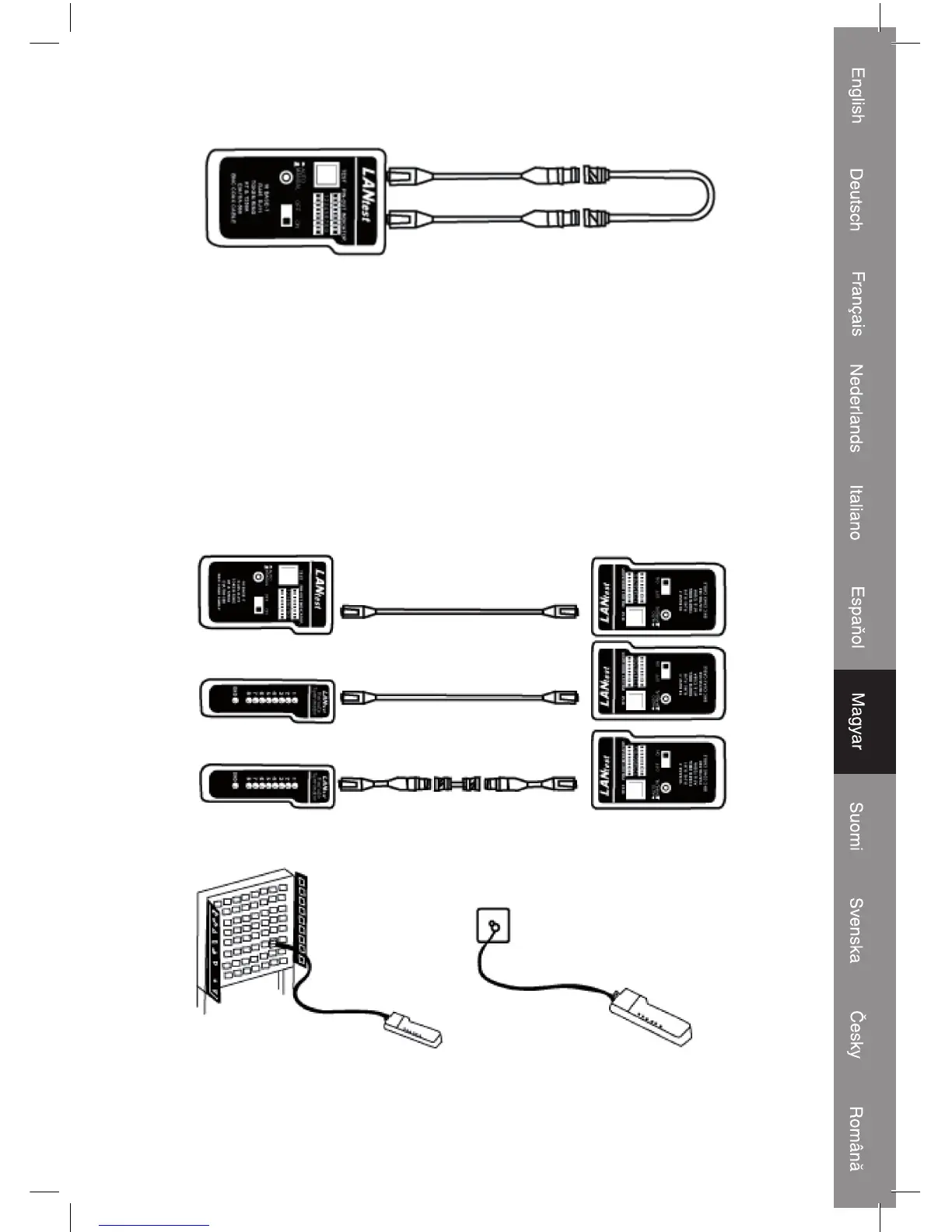 • A tesztelt kábel egyik végét dugaszolja a master egység (“” jelzésű) küldő RJ45