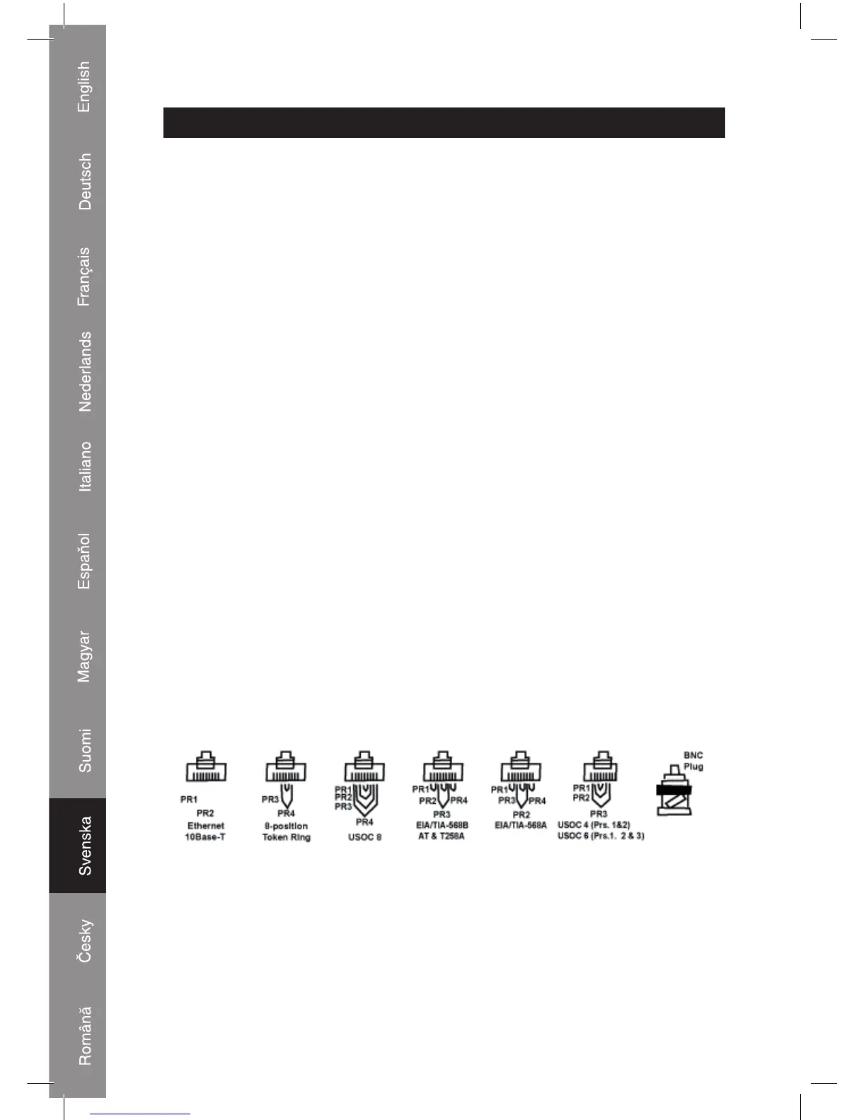 • Kan testa korrekt stiftkonfi guration för 10Base-T, 10Base-2 Ethernet kablar, RJ45/RJ11