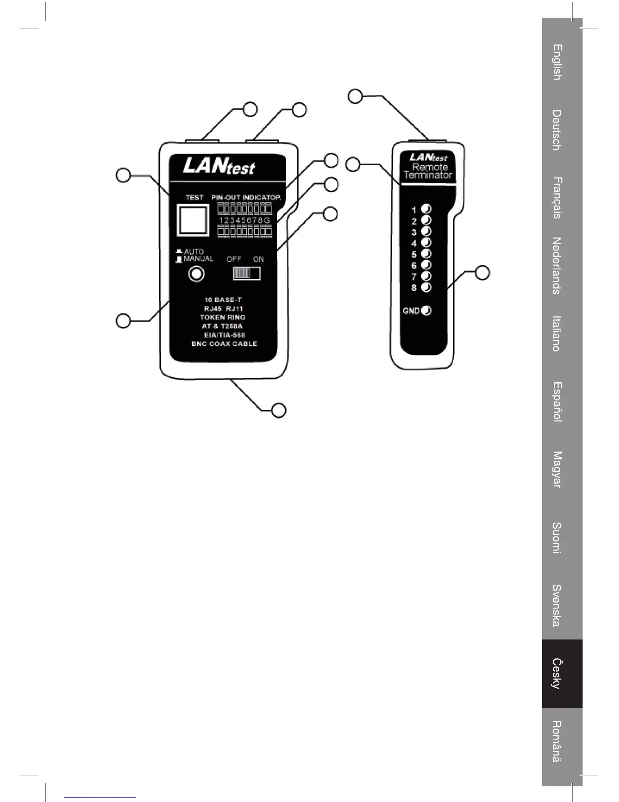„“) a druhý konec testovaného kabelu zapojte do přijímacího konektoru RJ45.