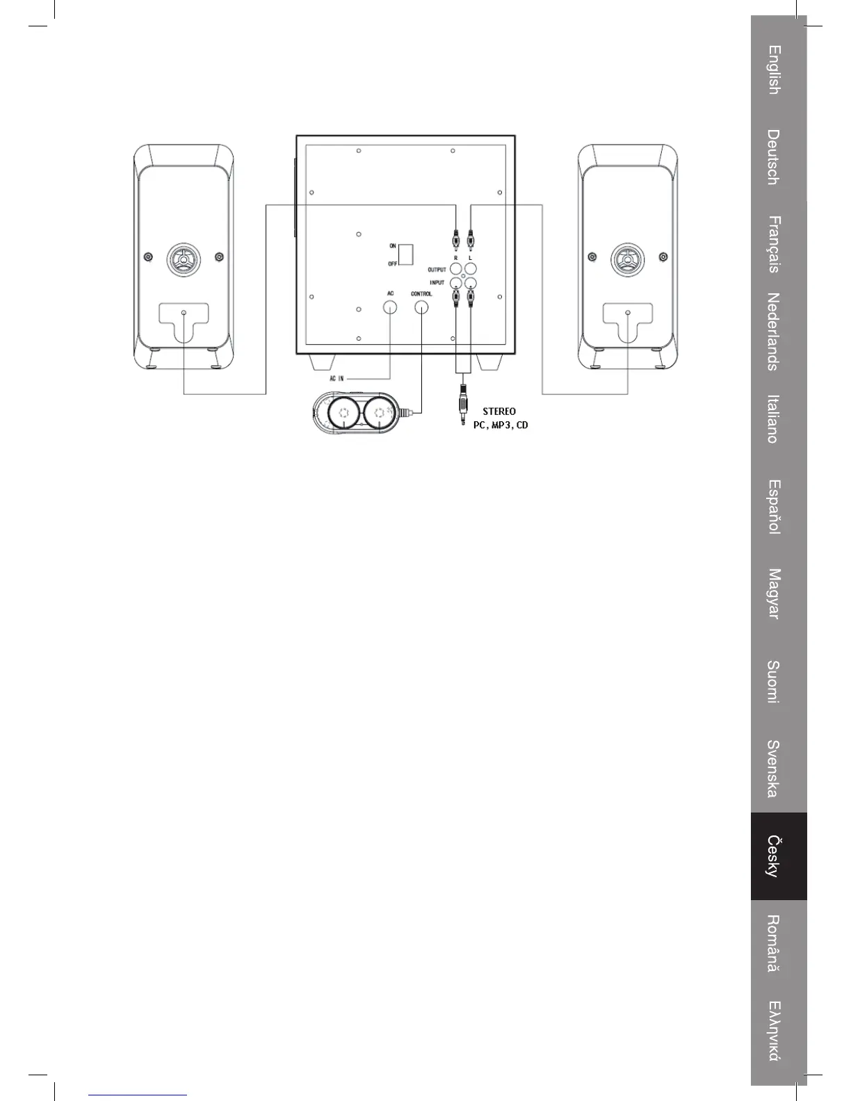 • Krok 1: Zdroj zvuku PC/CD/MP3 připojte k hlavní jednotce (subwooferu) stereofonním