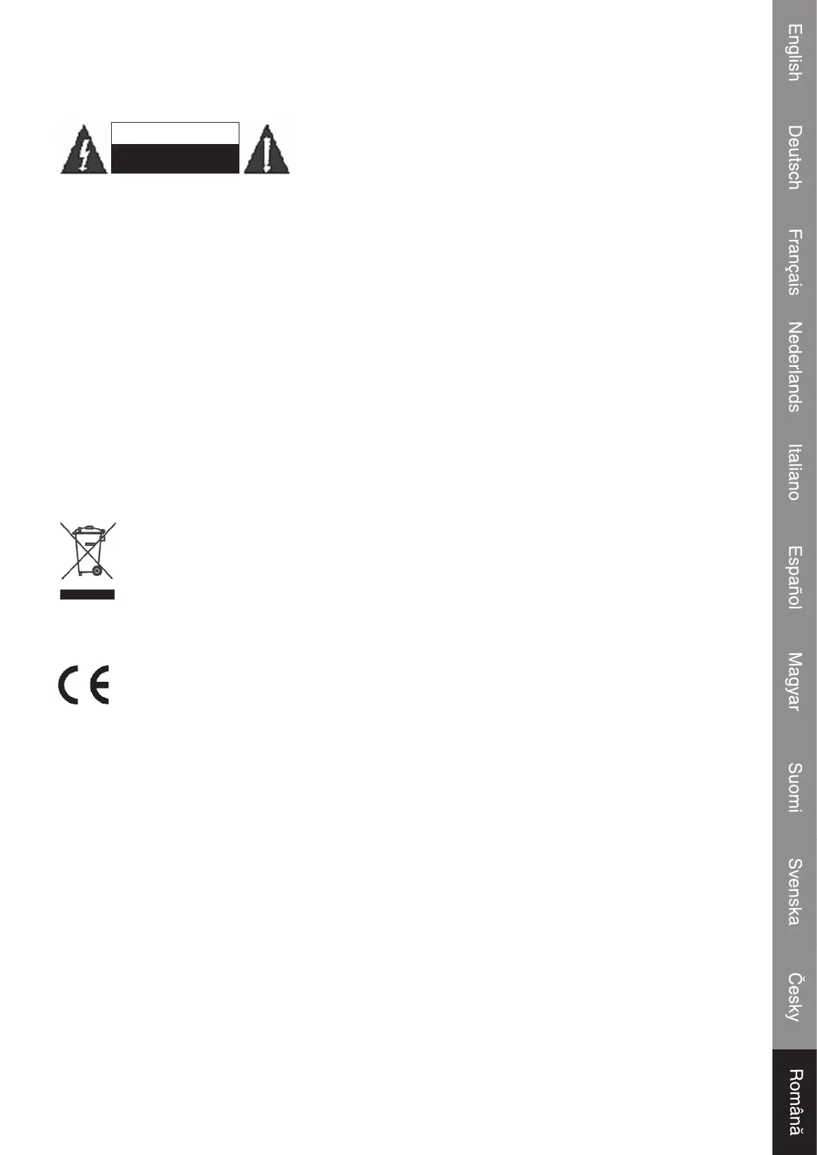 electrocutare, acest produs trebuie deschis doar de un tehnician
