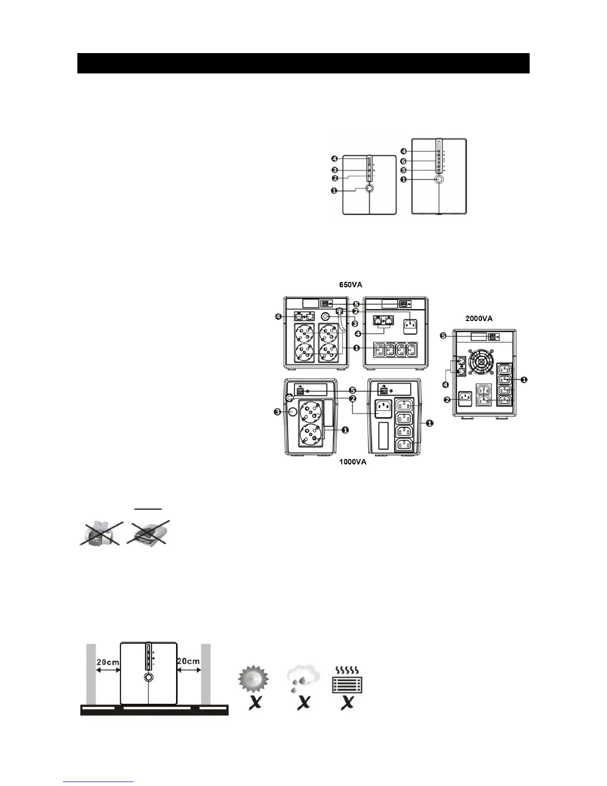 aire (vea la imagen siguiente). Coloque el UPS separado de otras unidades al menos 20 cm, para evitar