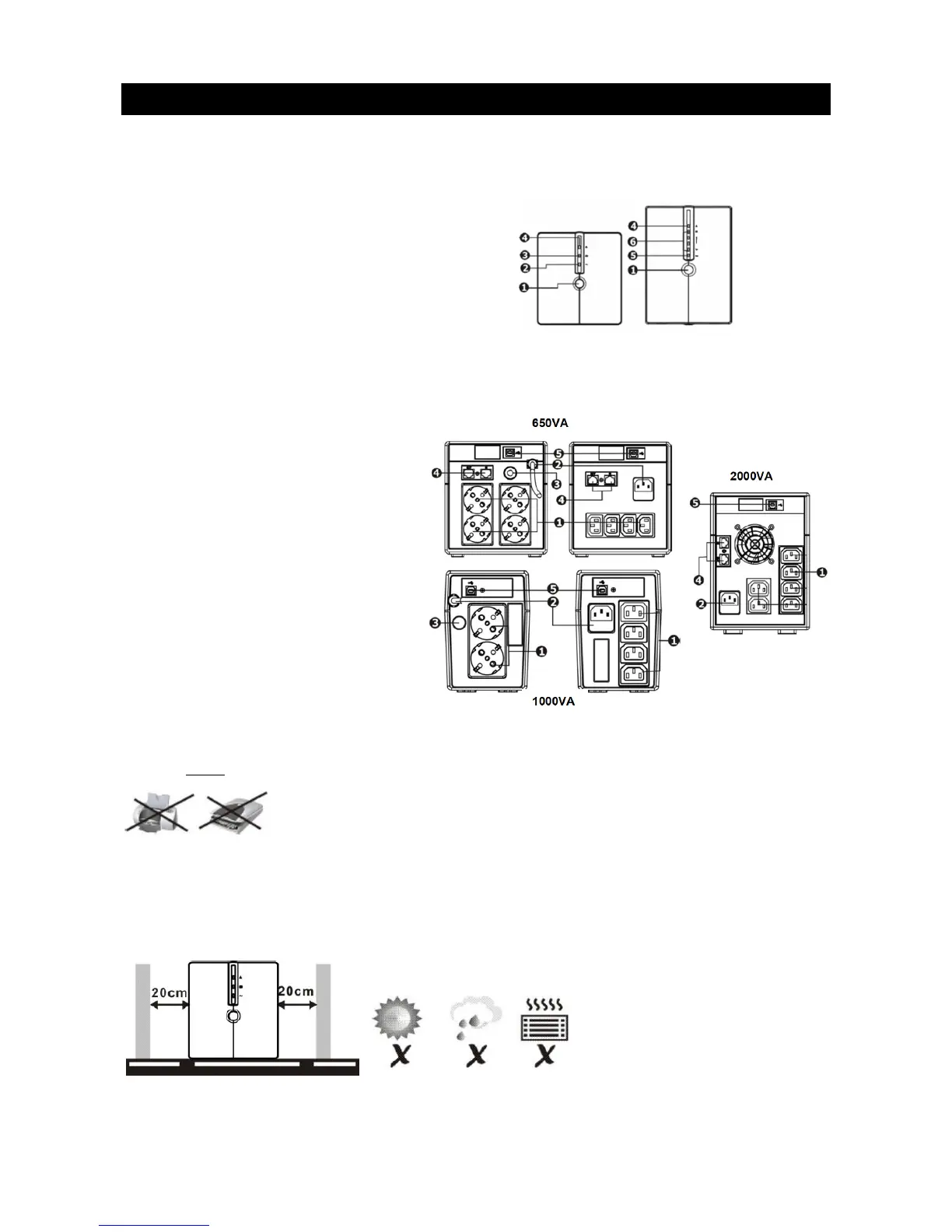 below). Place the UPS away from other units by at least 20 cm to avoid interference. Do not operate the UPS