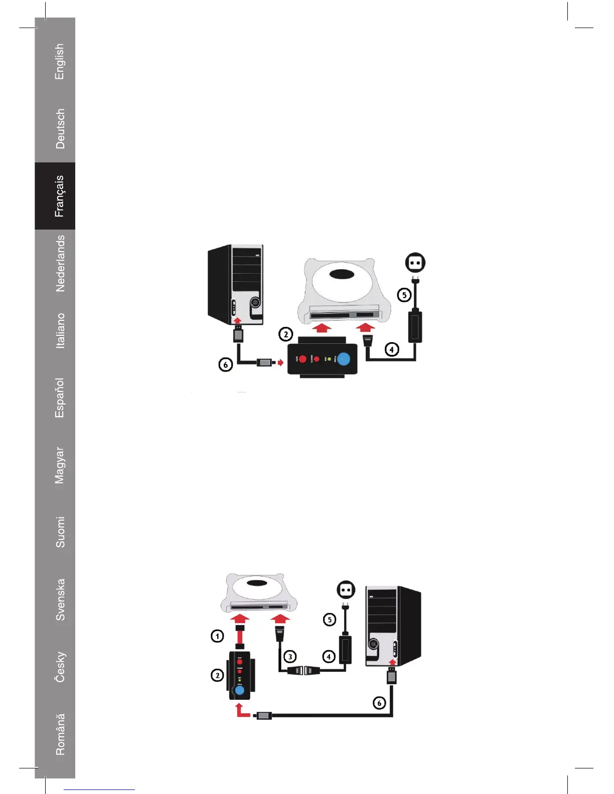 Enfin, raccordez le câble USB2.0 (6) à l'adaptateur (2) et à l'ordinateur.
