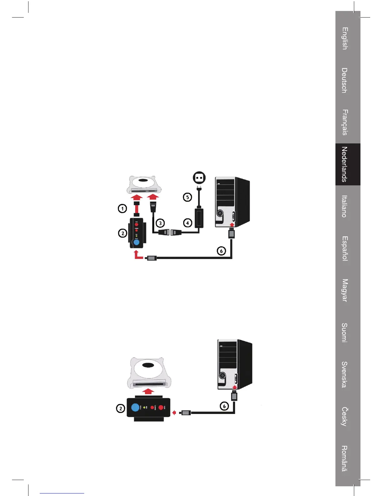 Sluit ten slotte de USB2.0 kabel (6) aan op de adapter (2) en de computer.