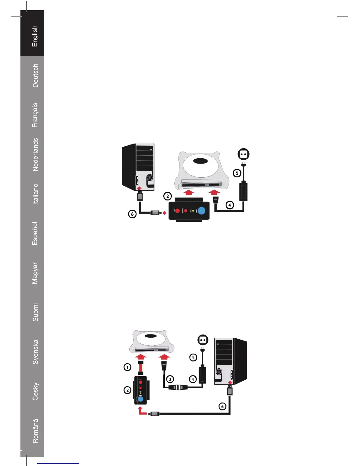At last connect the USB2.0 cable (6) to the adapter (2) and the computer