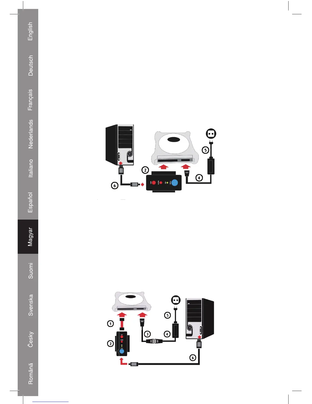 Végül pedig csatlakoztassa az USB 2.0 kábelt (6) az adapterhez (2) és a számítógéphez.