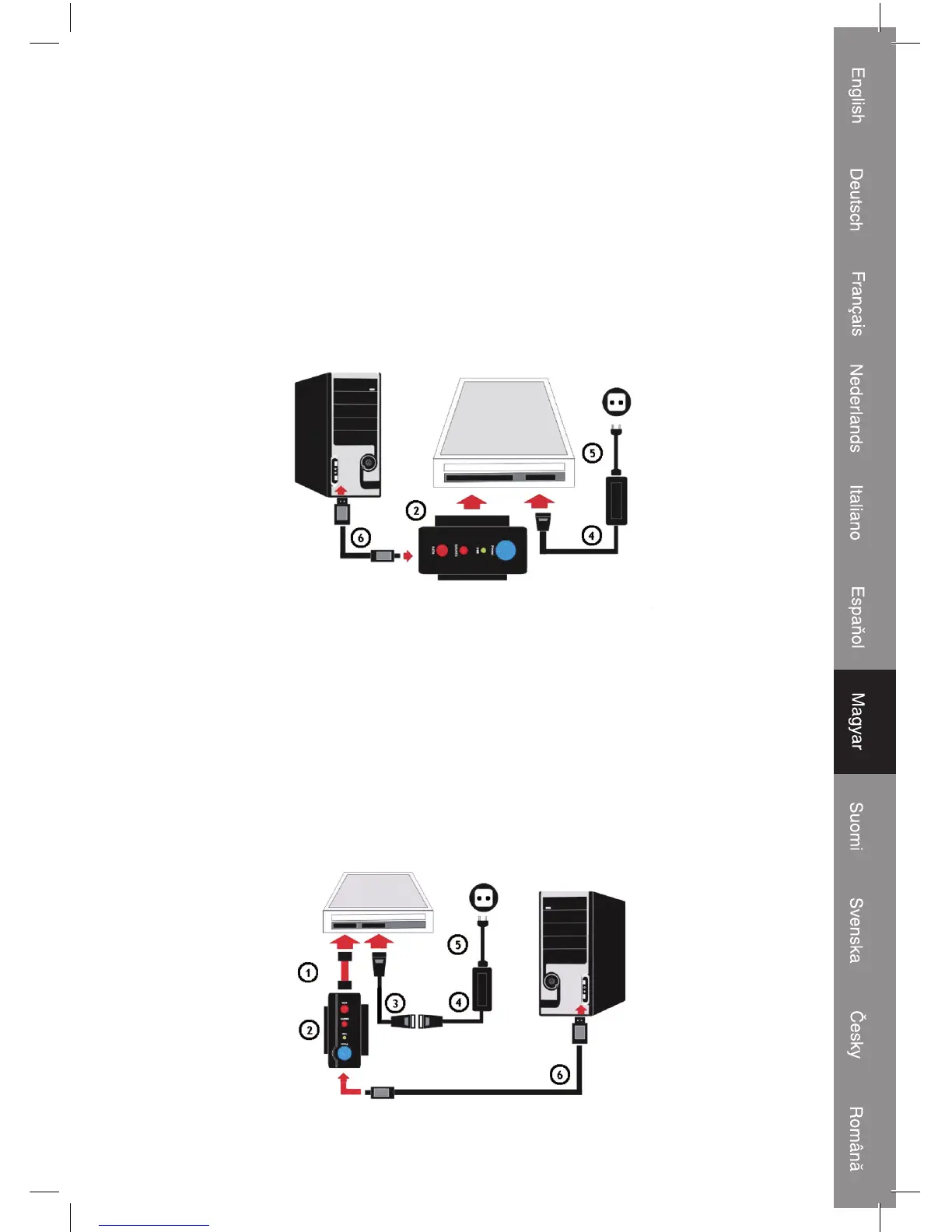 Végül pedig csatlakoztassa az USB 2.0 kábelt (6) az adapterhez (2) és a számítógéphez.