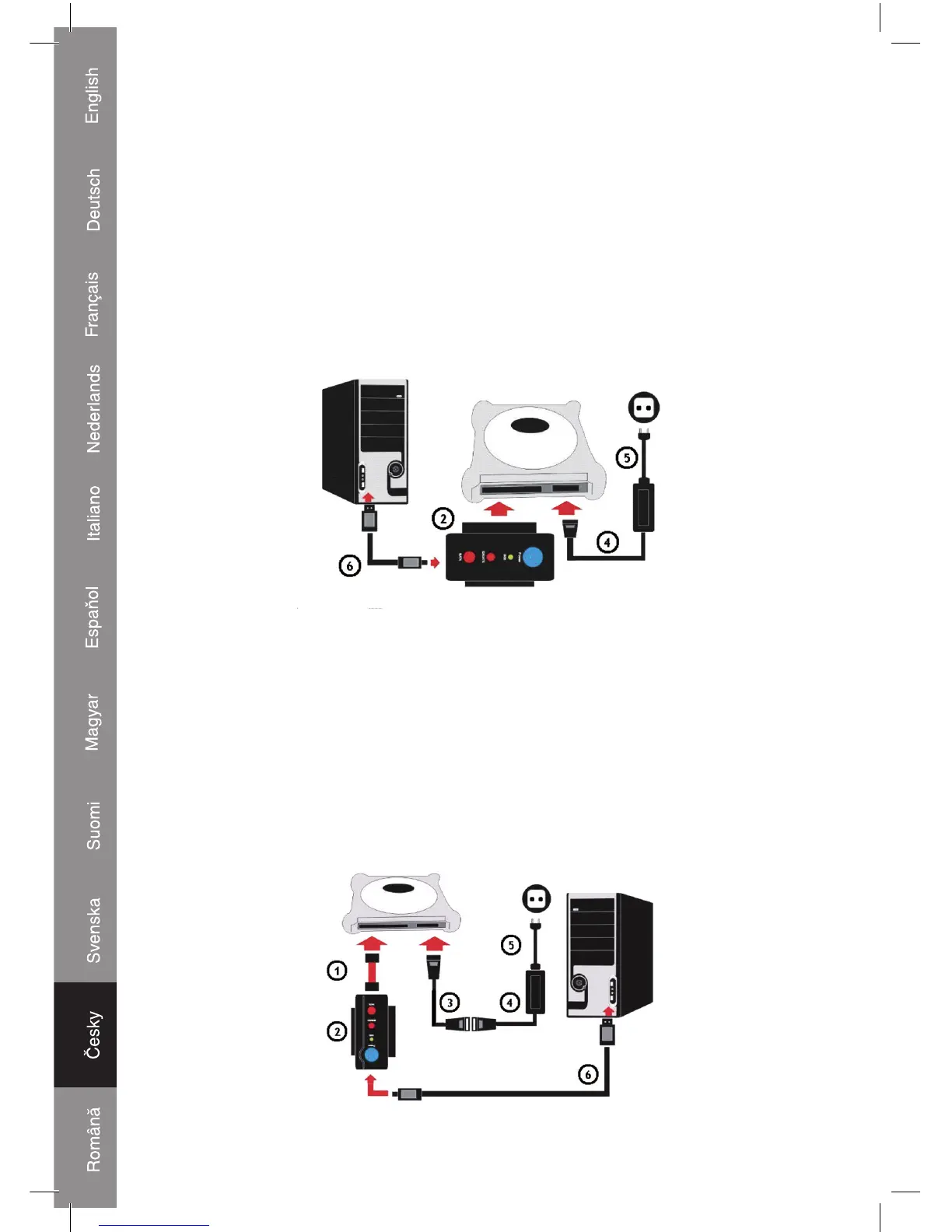 Zapojte napájecí kabel IDE/S-ATA (3) a napájecí kabel (5) do napájecího adaptéru (4).