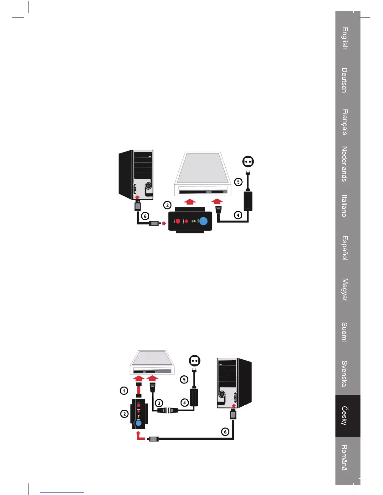 Zapojte napájecí kabel IDE/S-ATA (3) a napájecí kabel (5) do napájecího adaptéru (4).