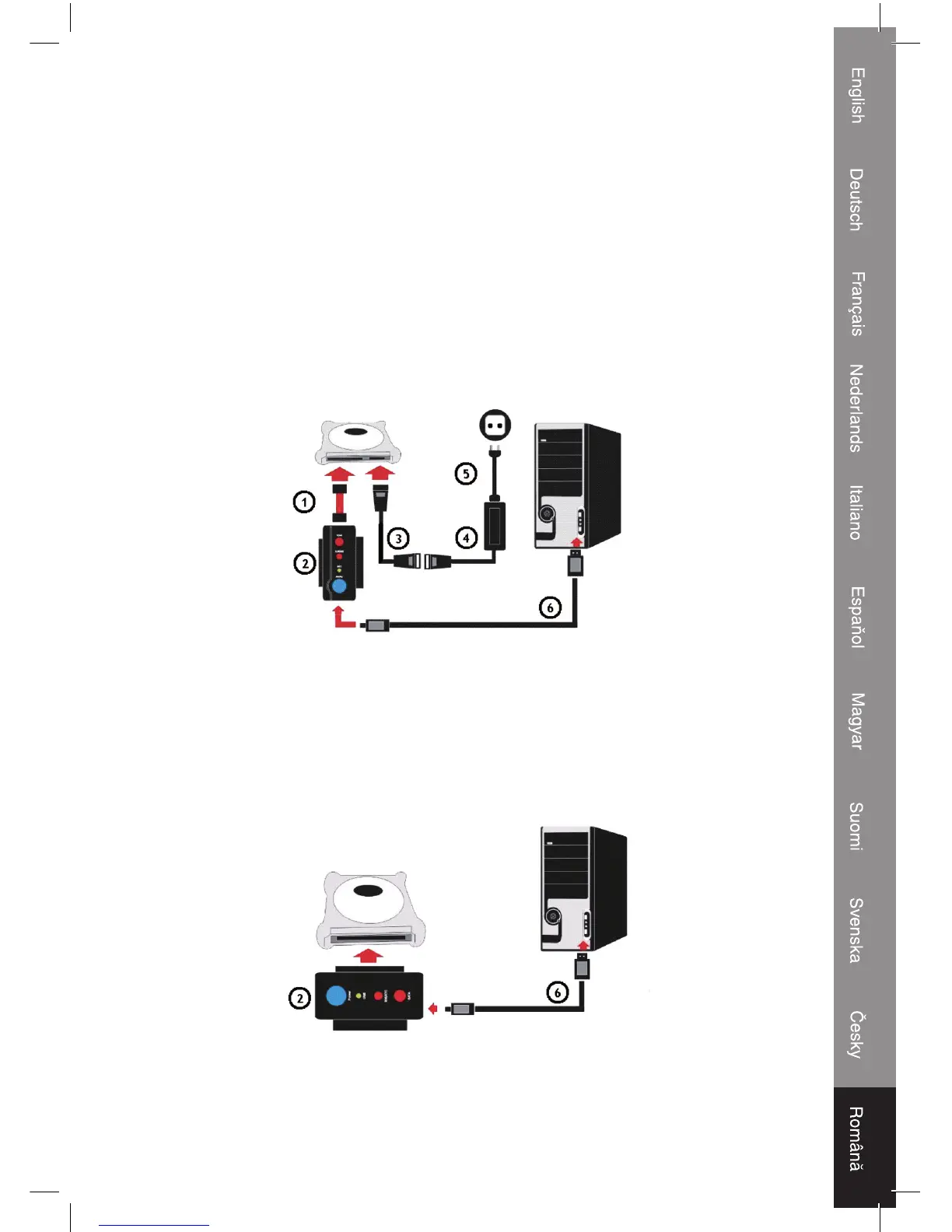 Conectaţi cablul adaptorului IDE la S-ATA (3) şi cablul de alimentare (5) la adaptorul de reţea (4).