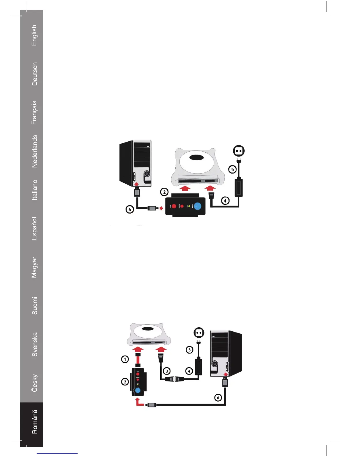 Conectaţi cablul adaptorului IDE la S-ATA (3) şi cablul de alimentare (5) la adaptorul de reţea (4).