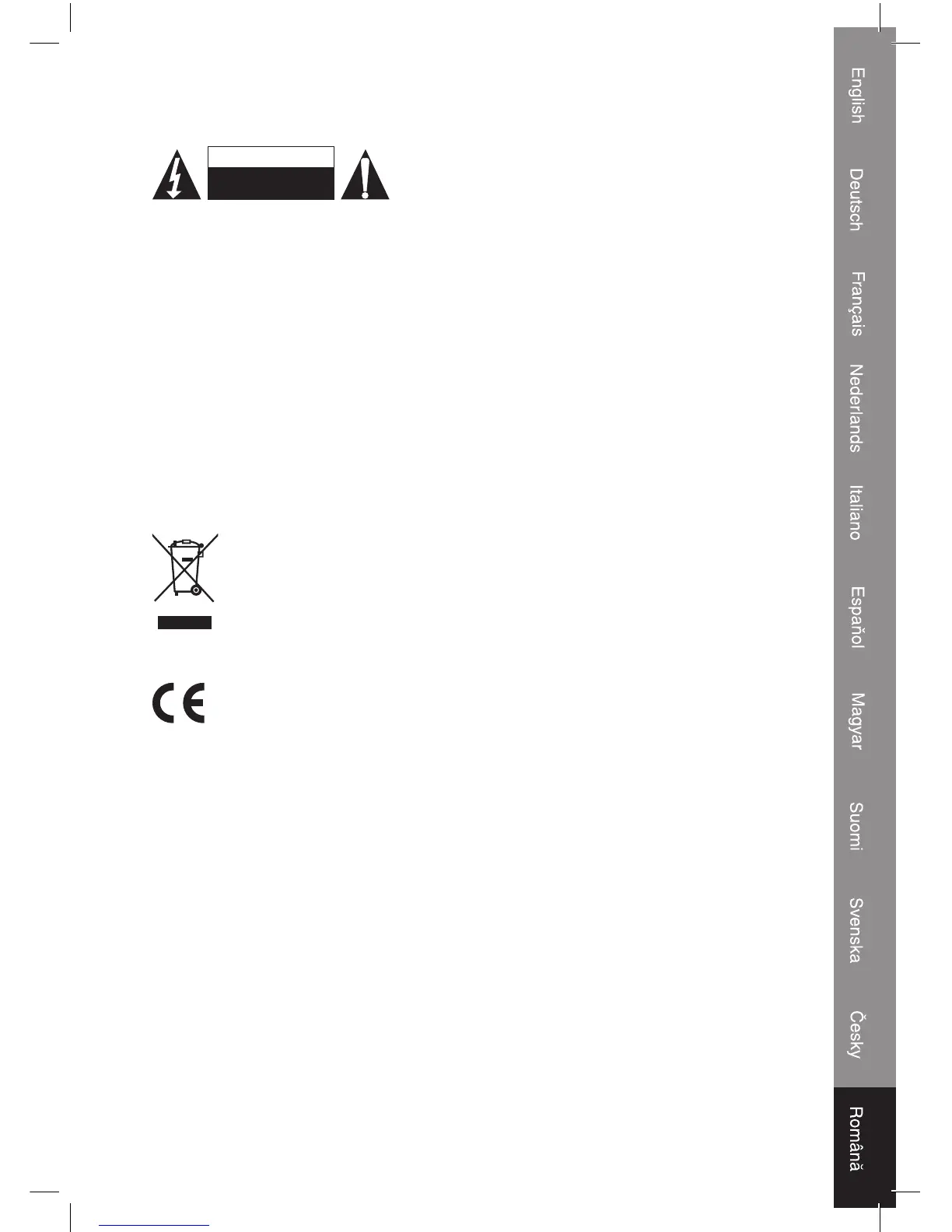 riscul de electrocutare, acest produs trebuie deschis