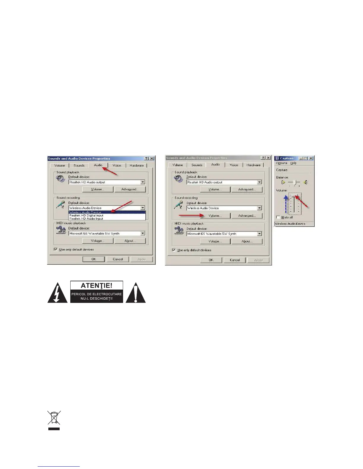 Selectaţi “Wireless Audio Device” (Dispozitiv audio fără fir) drept dispozitivul implicit din “Sound