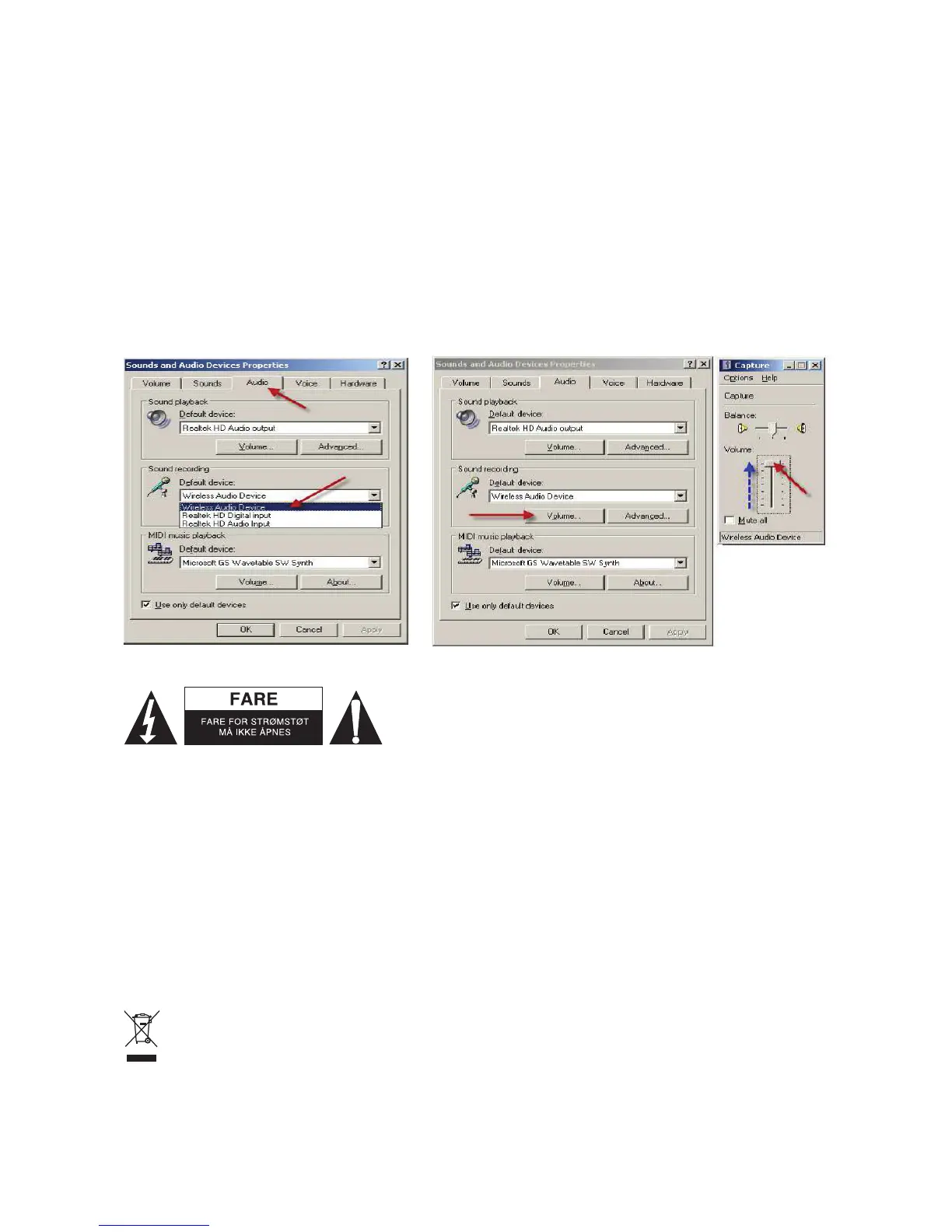 4.) Klikk på “Volum”-knappen i “Lydopptak”, sett volumet til maksimalt.