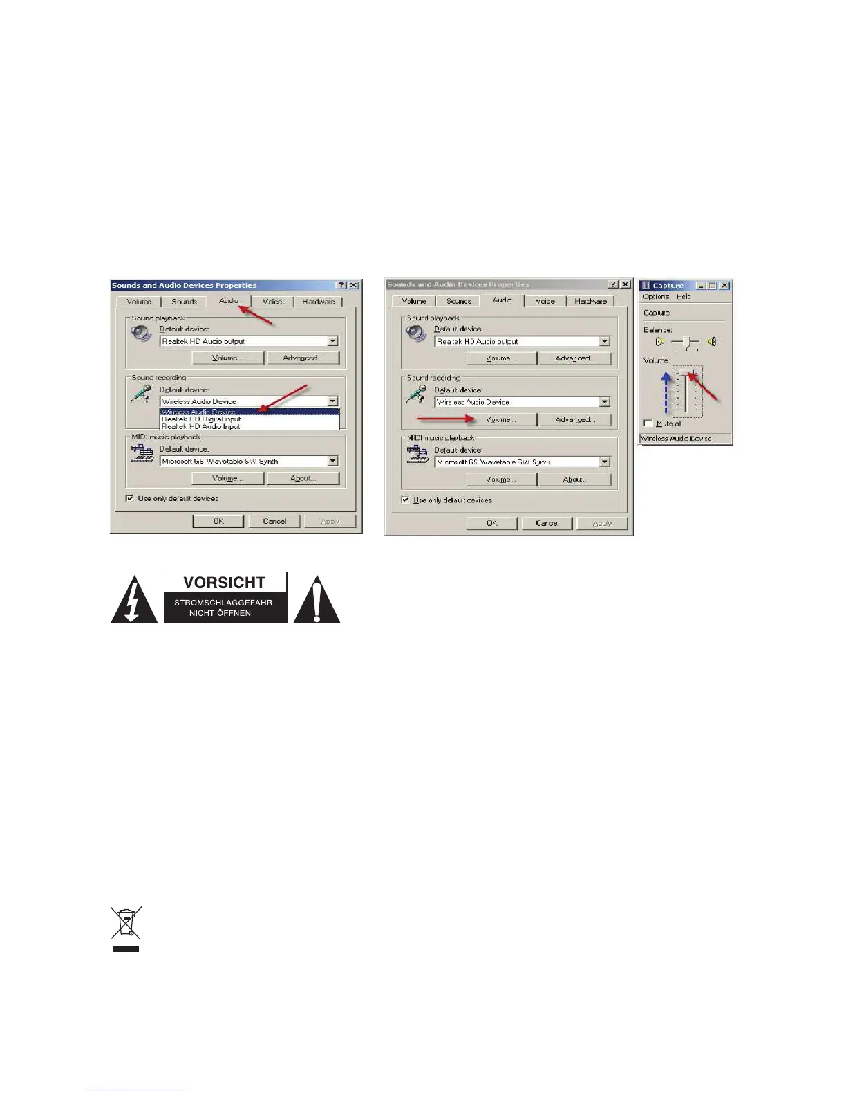 Wählen Sie “Drahtloses Audiogerät” als Standardgerät in “Soundaufnahme”