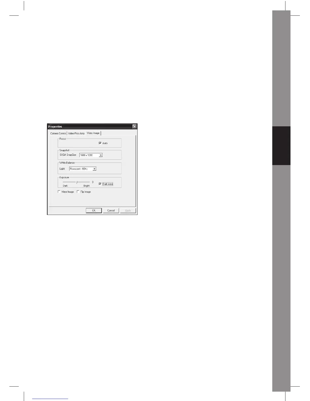 Klik op de Video Image (videobeeld) pagina. Hier kunt u Auto Focus activeren/