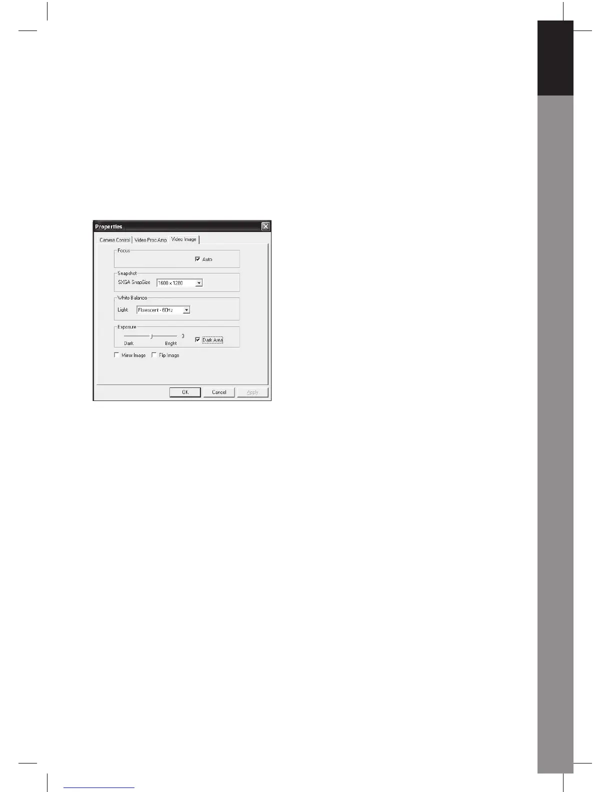 Dark Area: Please select Dark Area to enhance exposure value when using PC camera