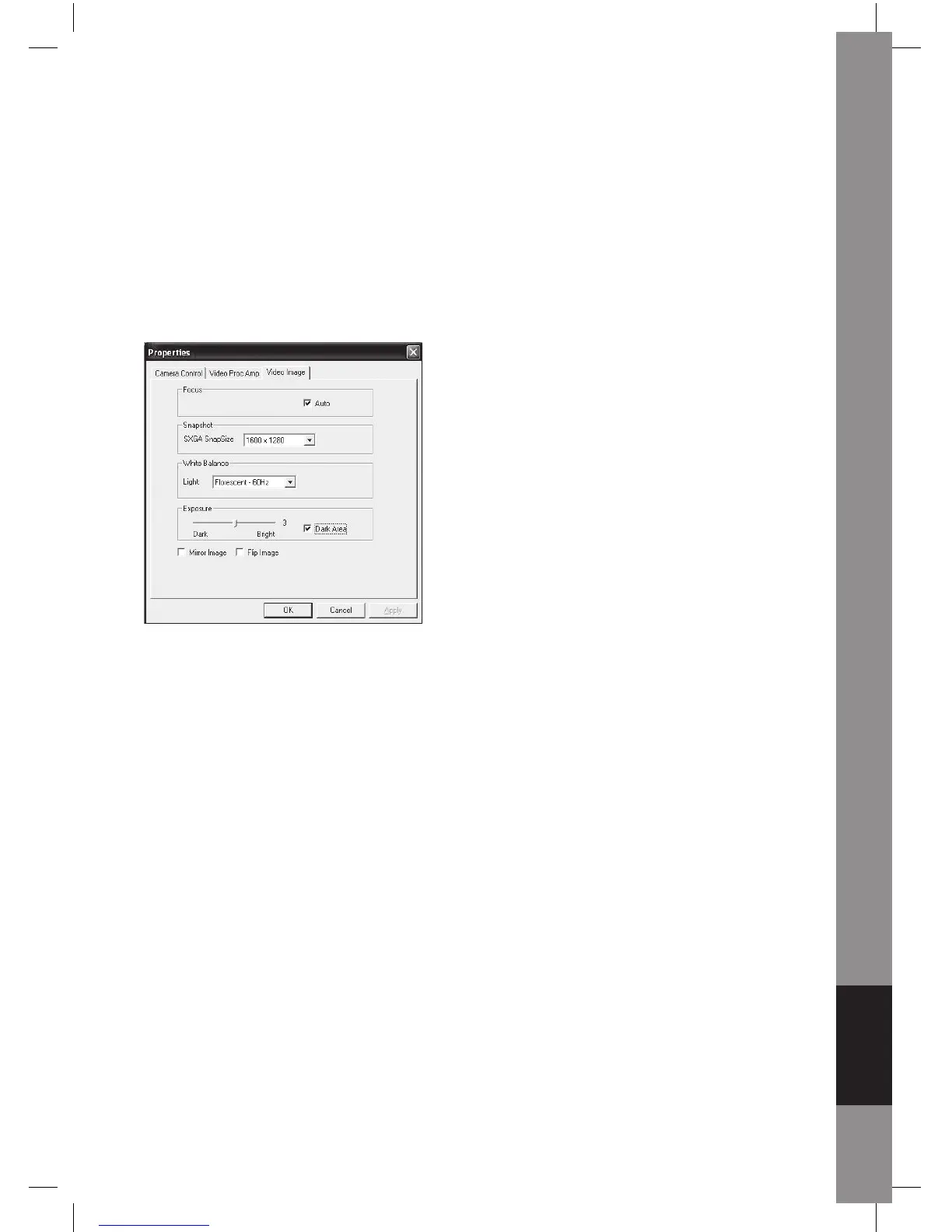 Klicka på sidan Video Image. Här kan du avaktivera/aktivera Auto Focus, ställa in