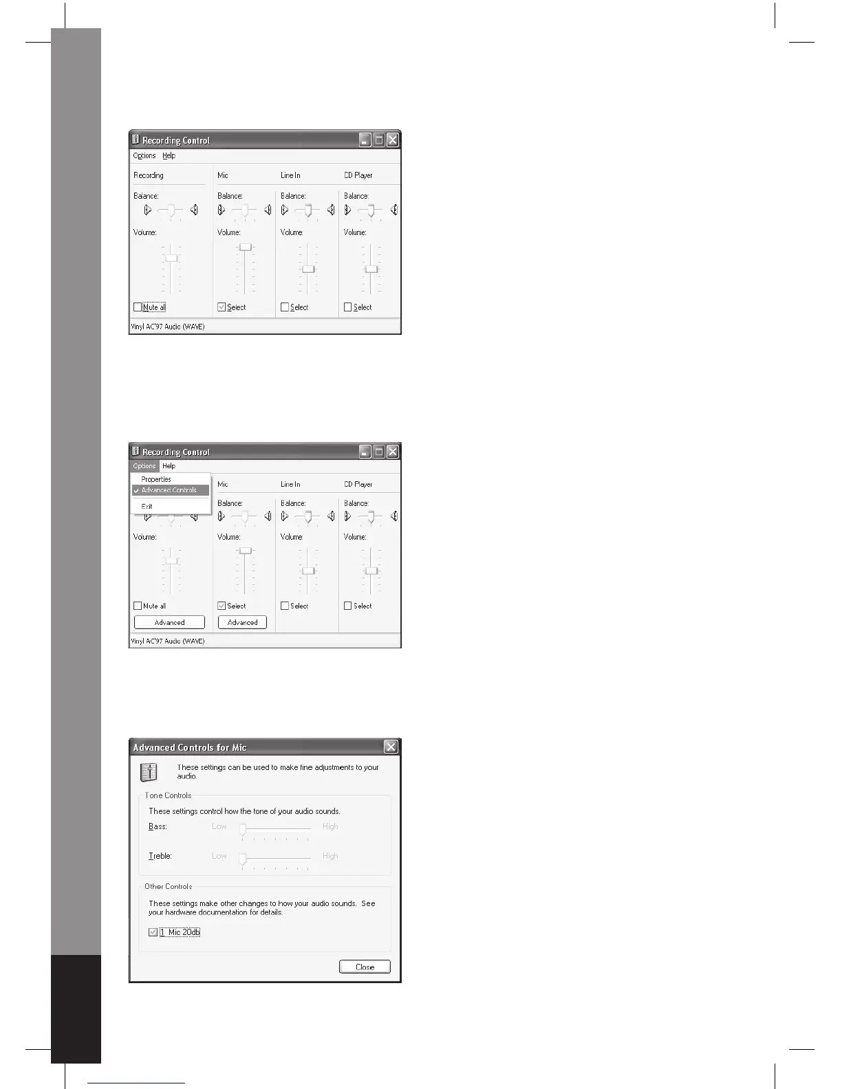 ovládání) a potom na položku Advanced (Pokročilé nastavení) v nastavení Microphone