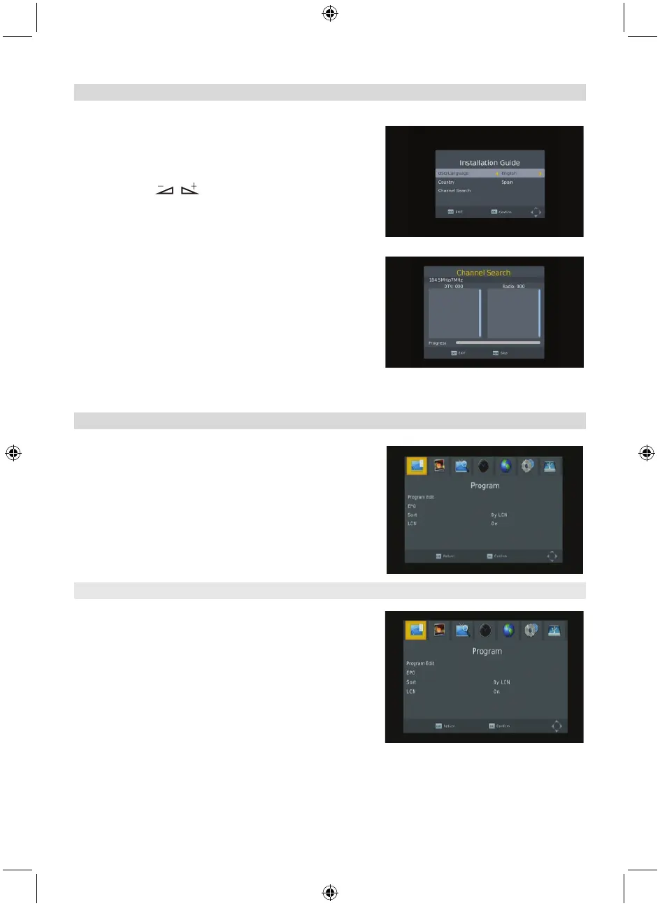 a selecta OSD language, Country şi Channel Search.