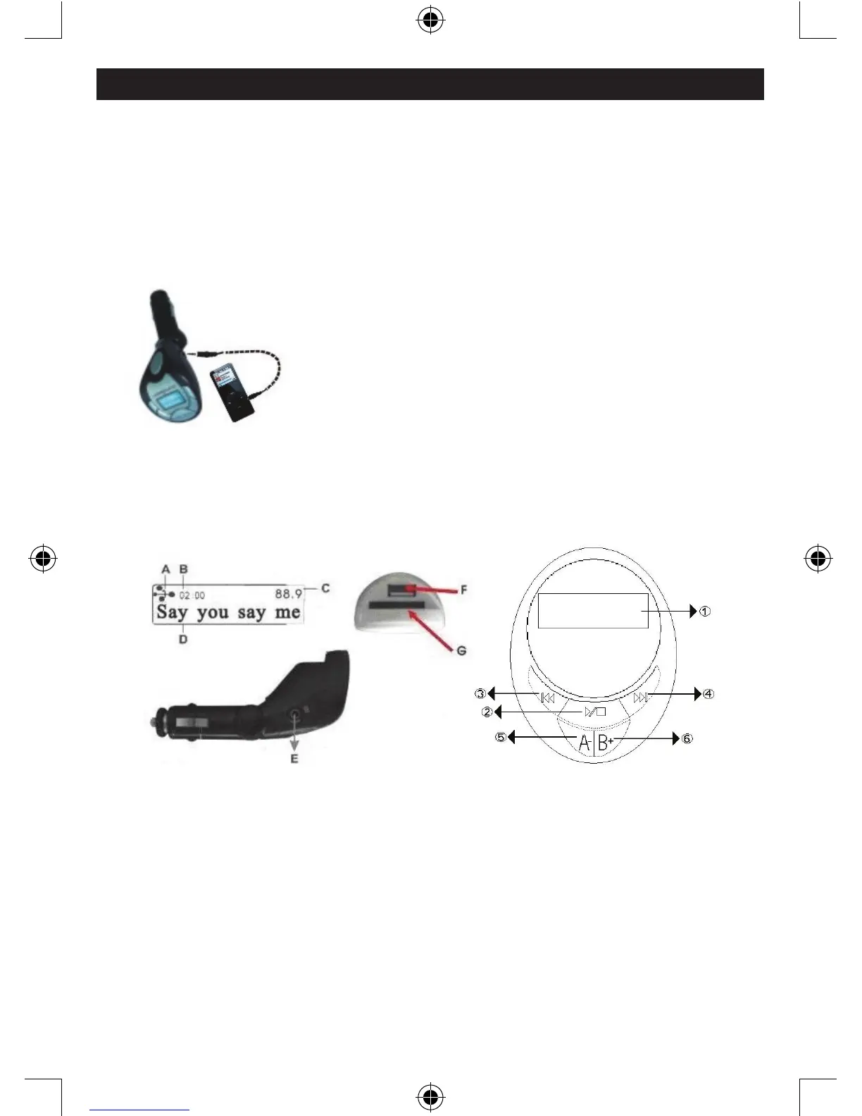 1. Introduzca una clavija de 2.5mm en el conector situado en un lado del transmisor FM.