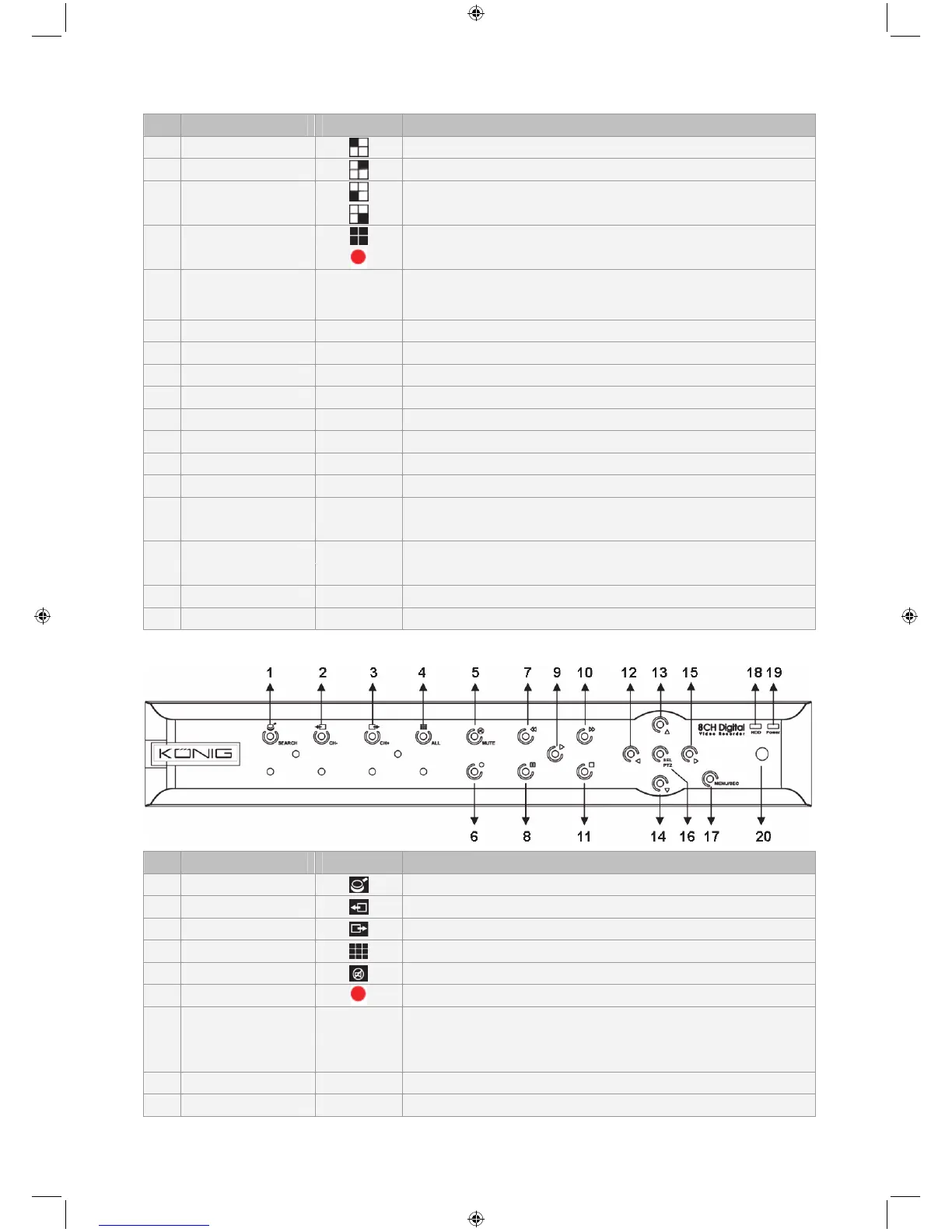 Beschrijving van het SEC-DVR408-voorpaneel: